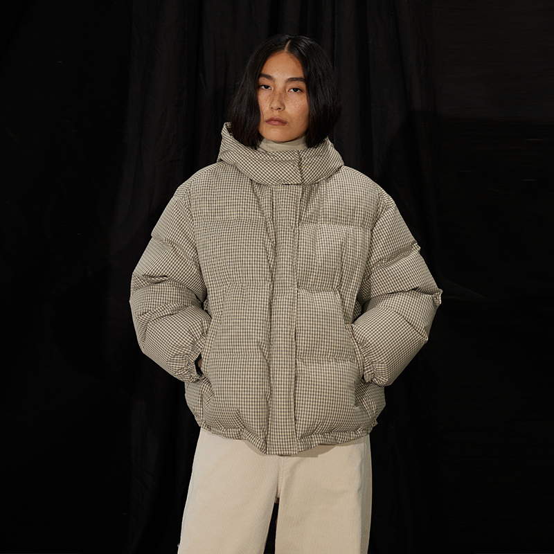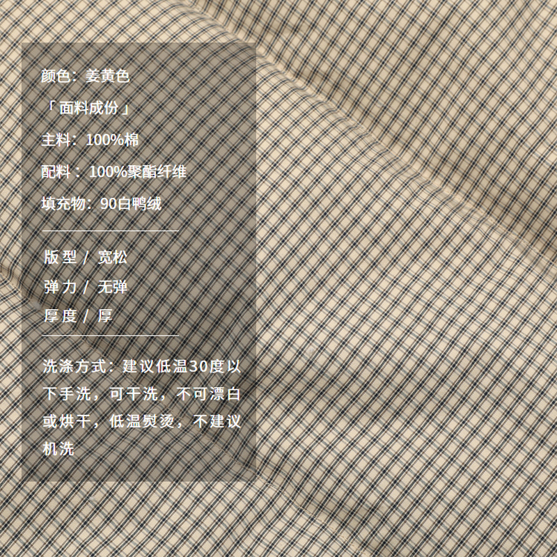 半圆女装[复古]2024冬季新款连帽格纹短款复古羽绒服女小众设计