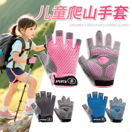 儿童爬山手套男女户外登山半指夏骑行健身单杠防S滑防晒透气防起