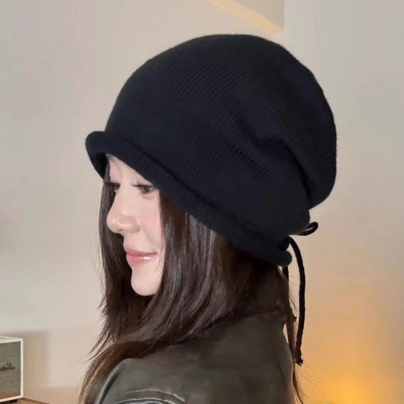 保暖毛线帽女秋冬针织时尚大头围堆堆帽显脸小包头帽ins红色黑色