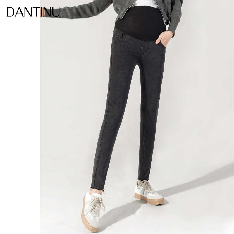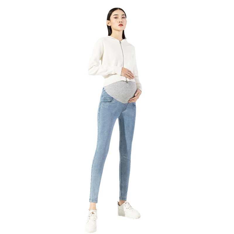 孕妇裤子牛仔裤秋季外穿时尚大码修身托腹九分小脚长裤春秋打底裤