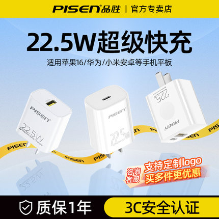品胜22.5W超级快充电器Type-C插头多口适用iPhone17苹果16华为小米三星荣耀安卓手机iPad平板双口通用快充头
