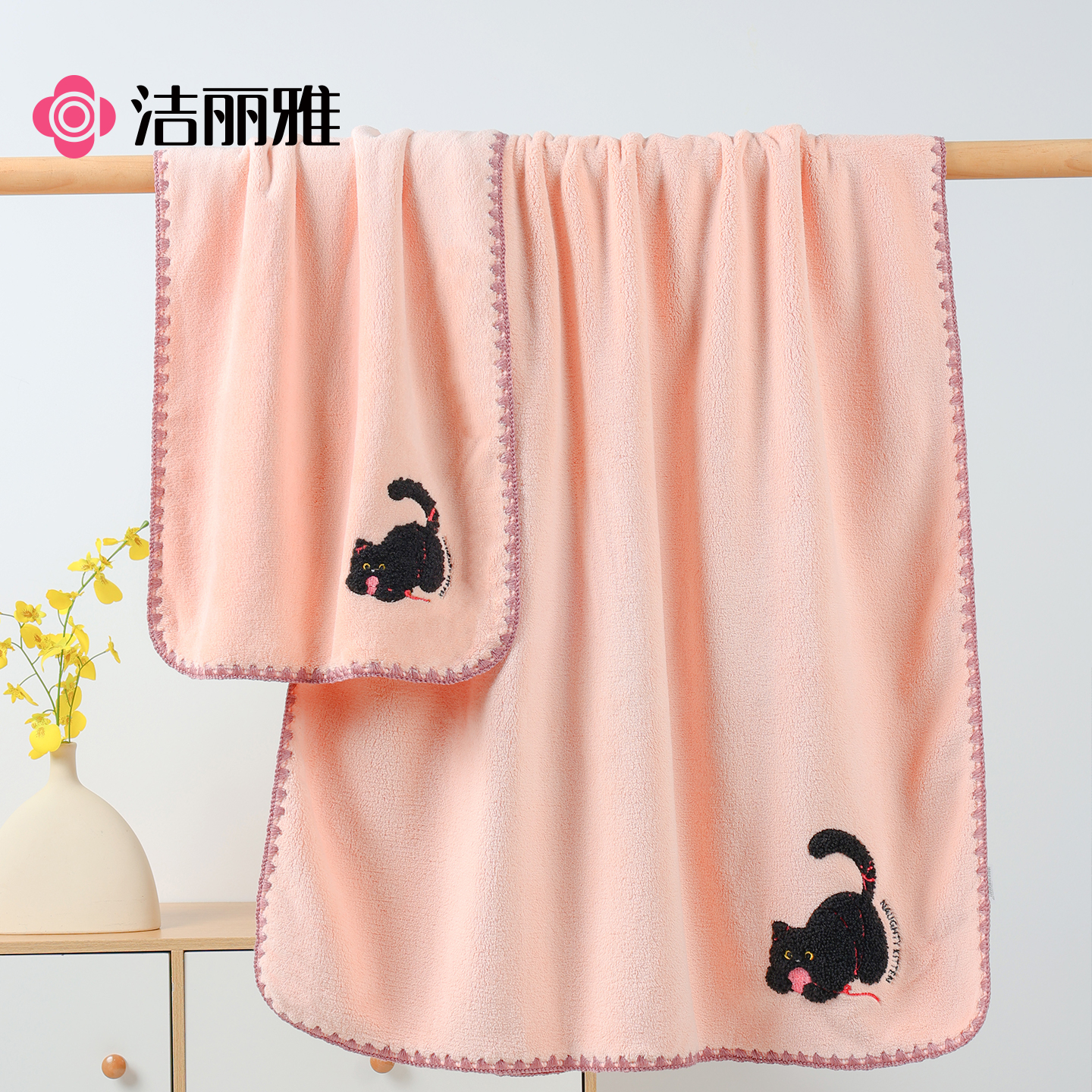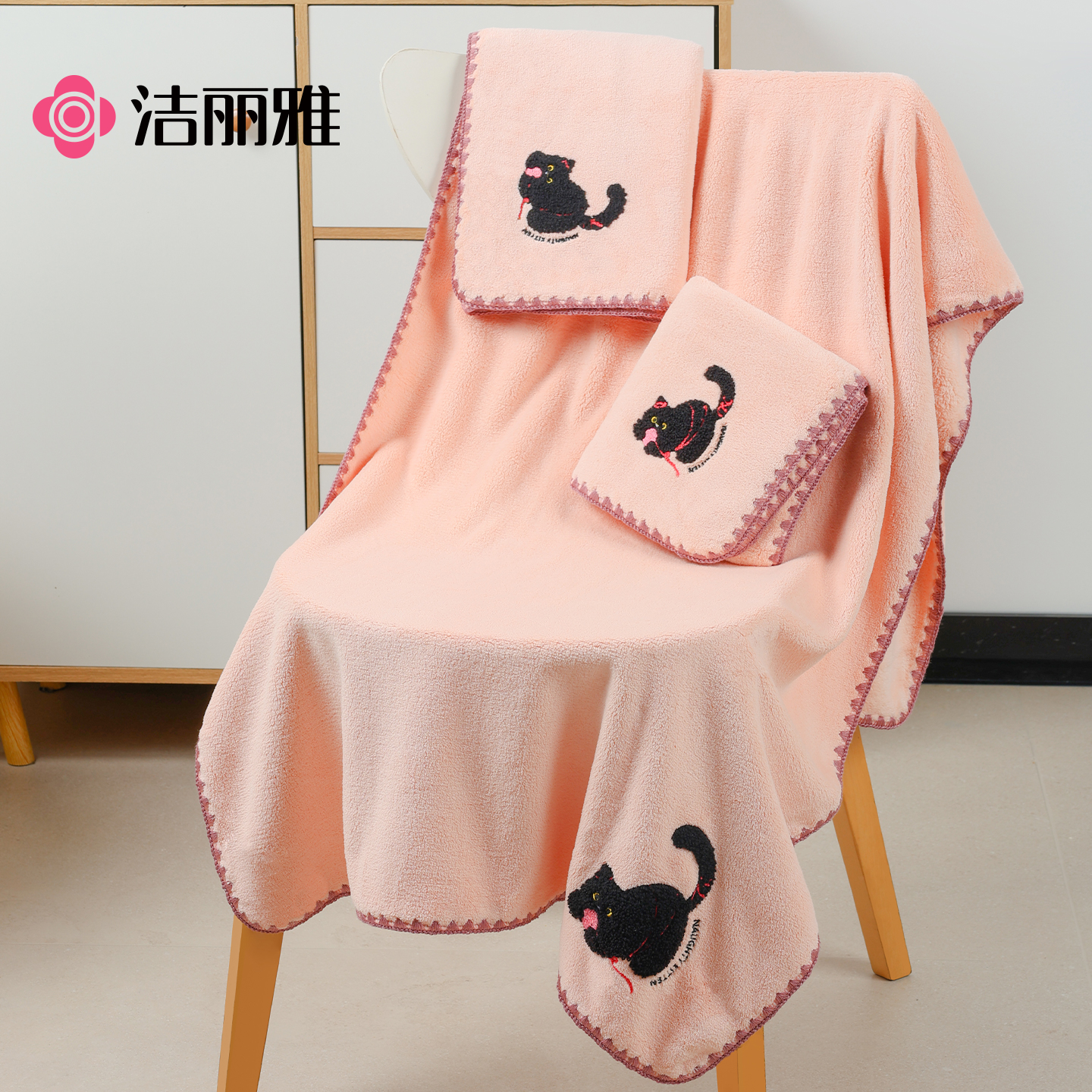 洁丽雅可爱浴巾7A抗菌吸水