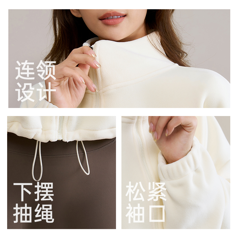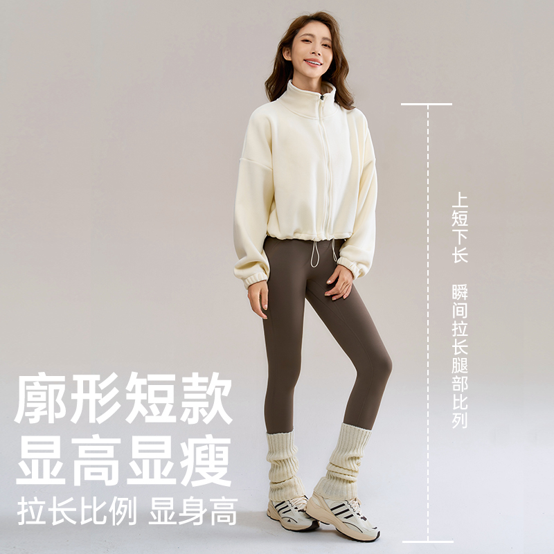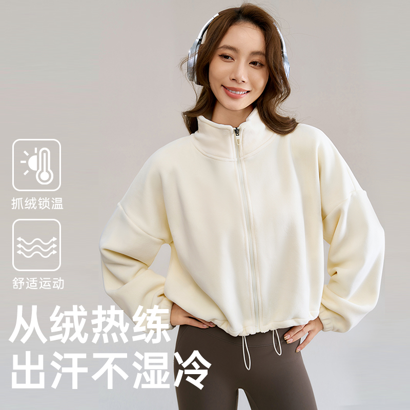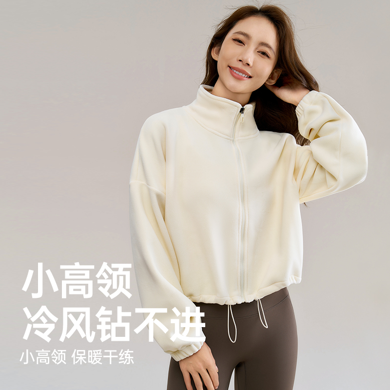悦步瑜伽服外套女秋冬加绒保暖立领卫衣显瘦短款运动长袖健身上衣