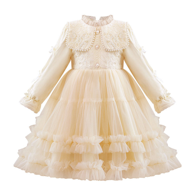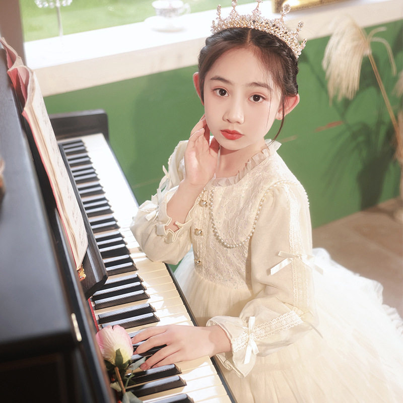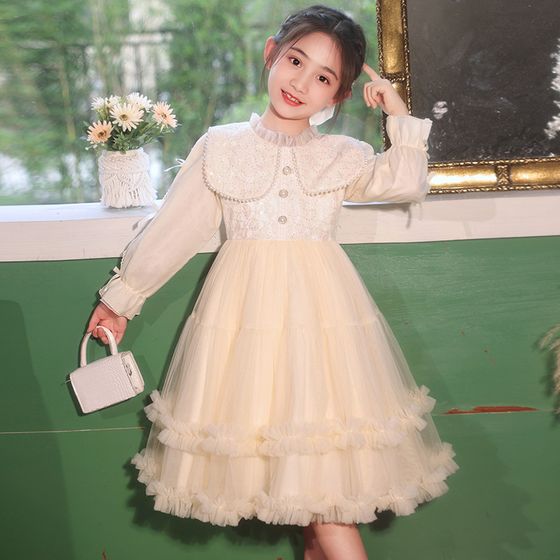 女童长袖连衣裙洋气小女孩演出礼服儿童加绒加厚公主裙春秋冬裙子