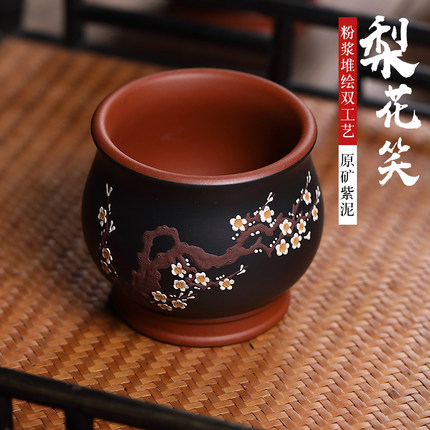紫砂主人杯正宗宜兴原矿紫砂品茗杯手绘中国风小容量功夫茶具茶杯