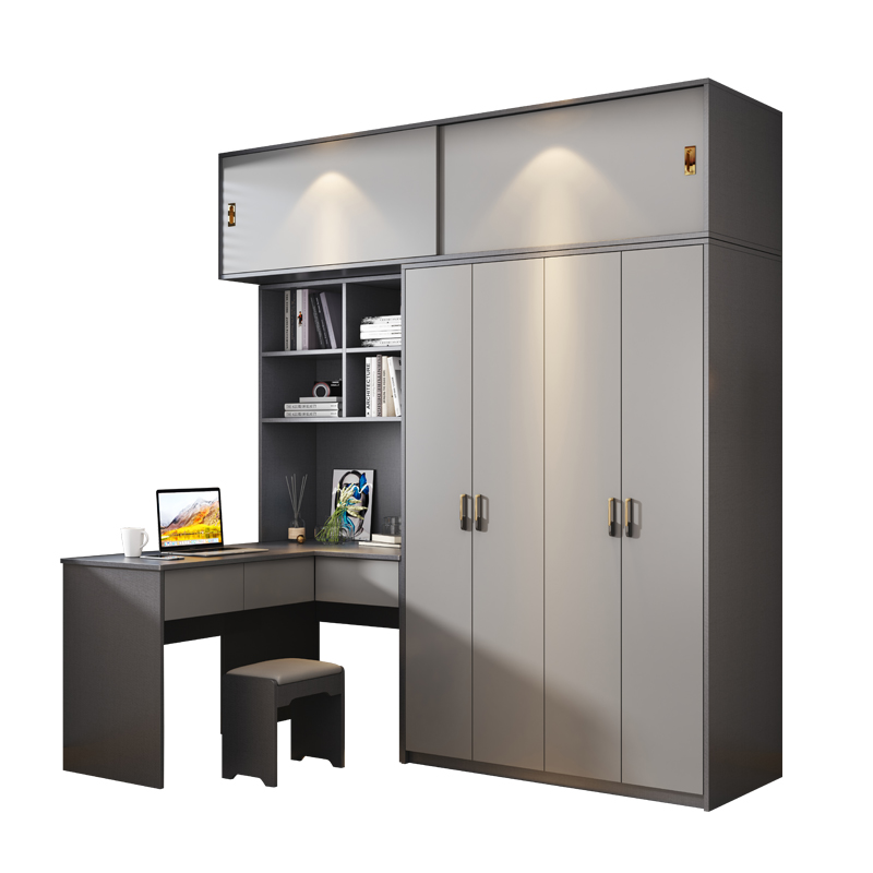 现代实木颗粒板L型转角电脑桌衣柜组合小户型卧室家用连体书桌柜