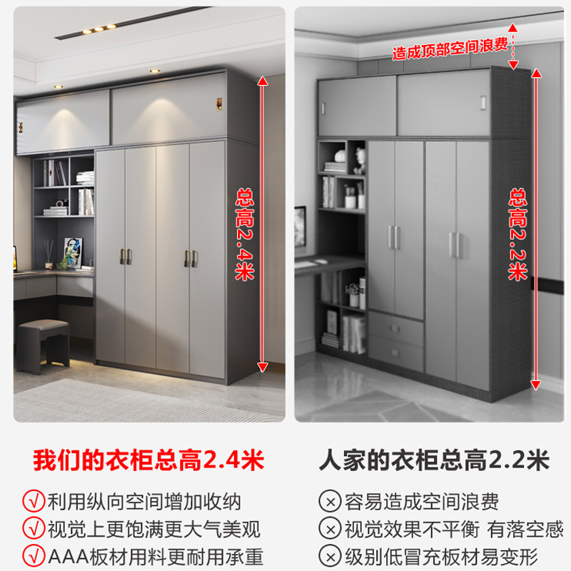 实木颗粒板家具衣柜连体书桌柜