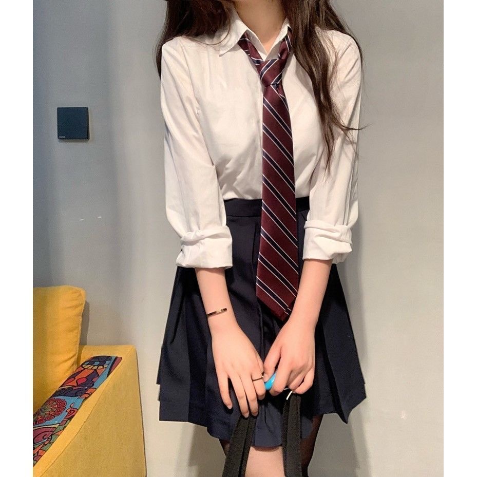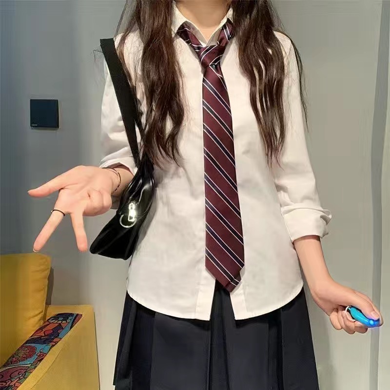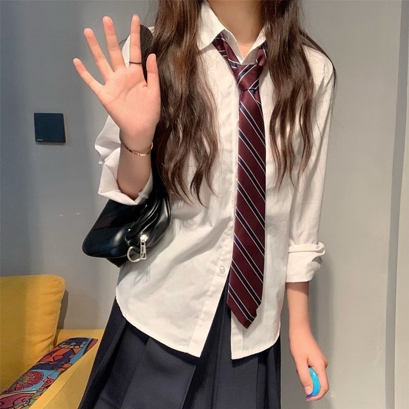 日系JK手打领带女白衬衫制服校供学院风长袖衬衣少女学生宽松软妹