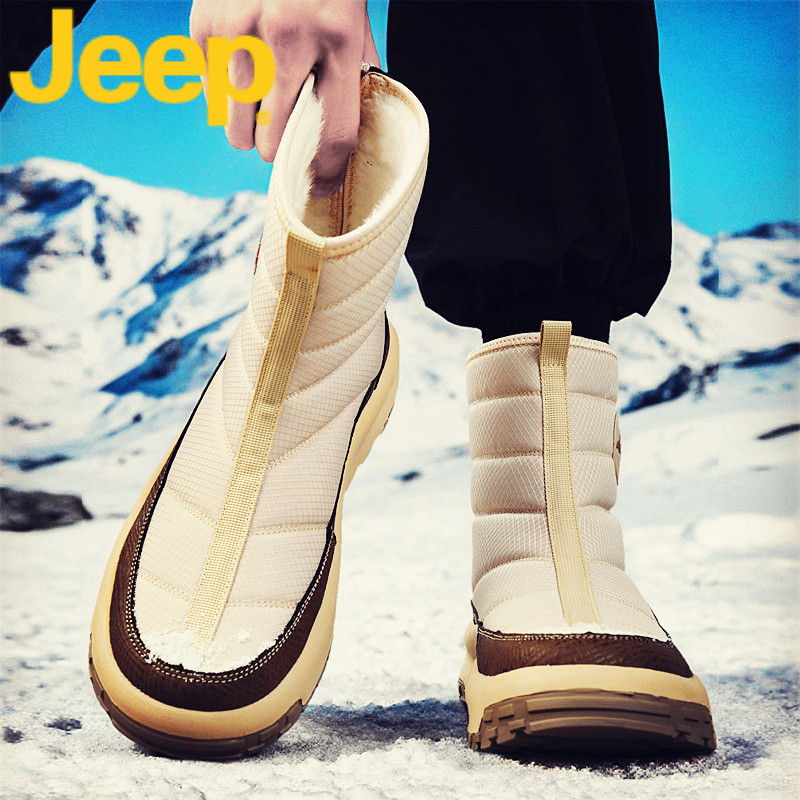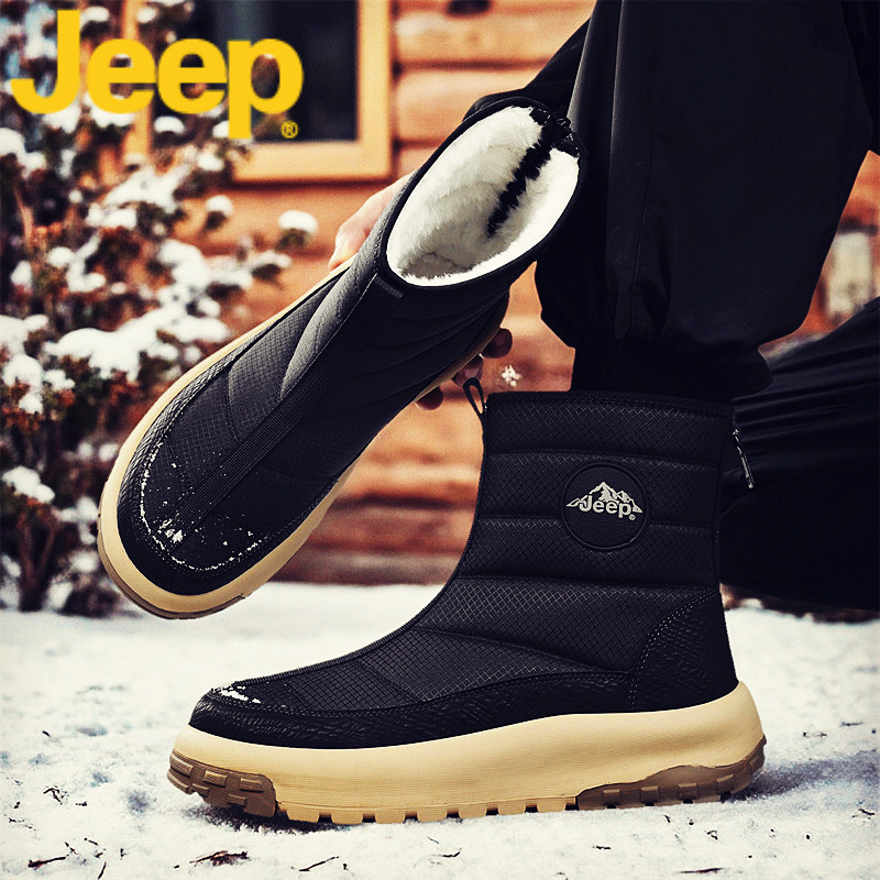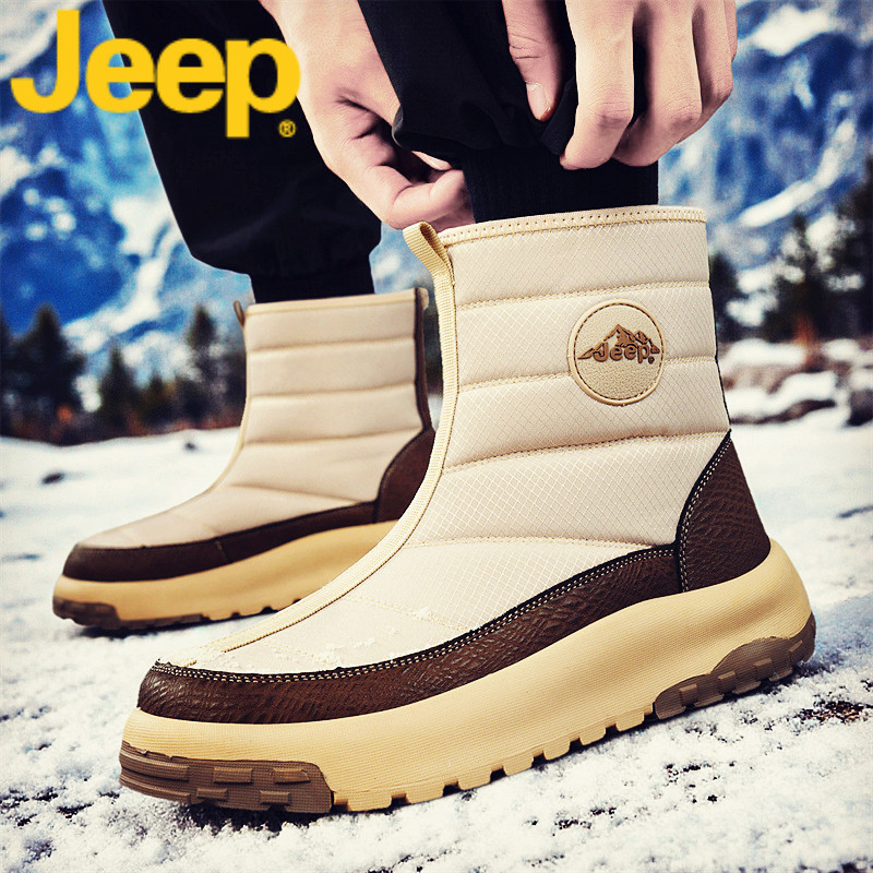 jeep吉普雪地靴男鞋冬季加绒保暖棉鞋子男士2025新款高帮款马丁靴