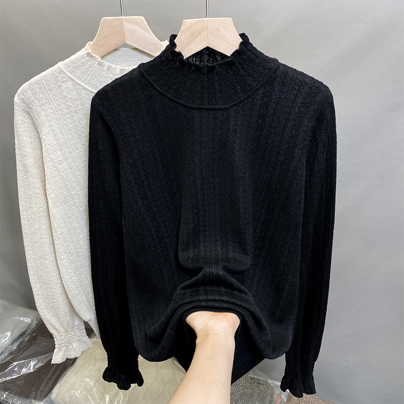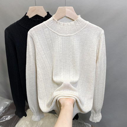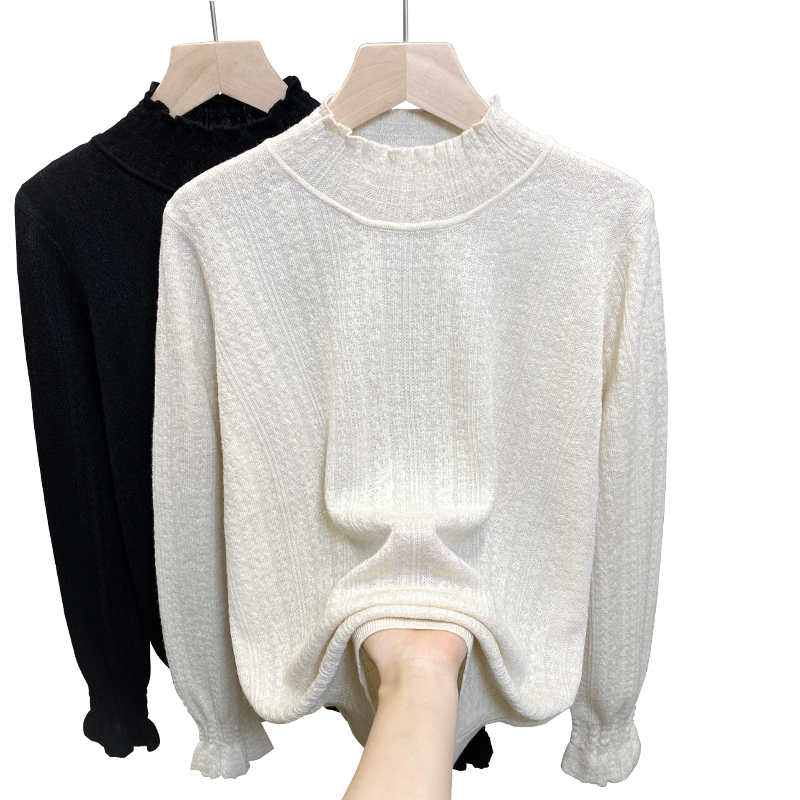 羊毛蕾丝半高领毛衣女内搭打底衫