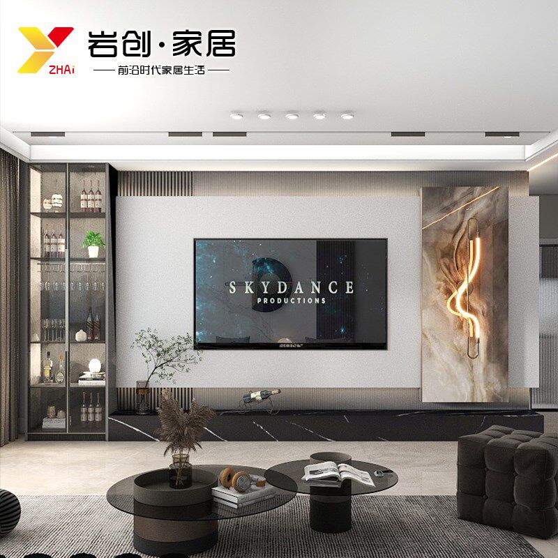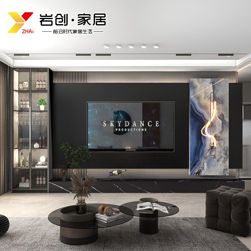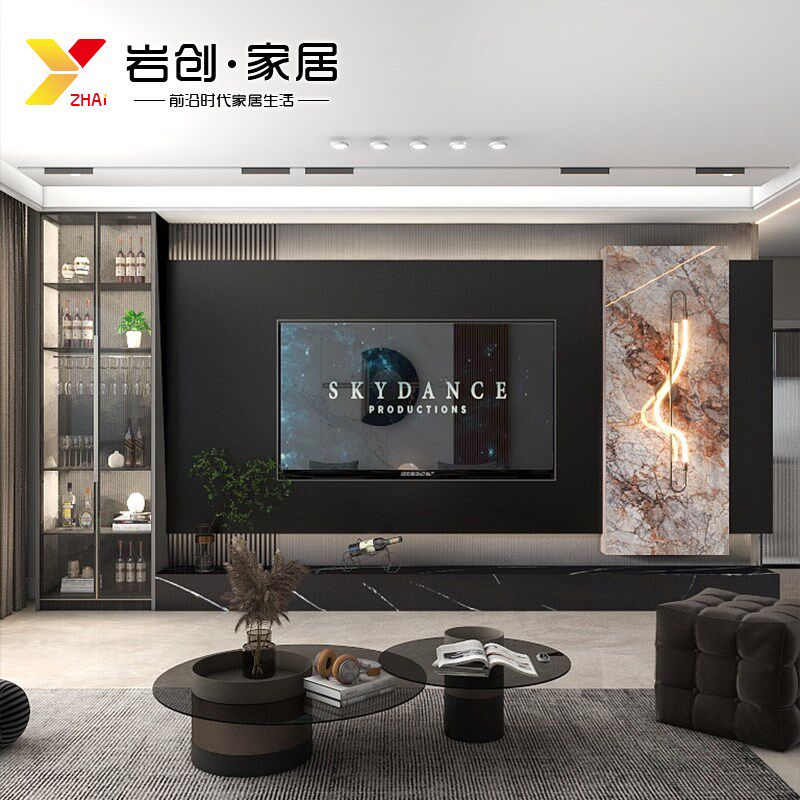 电视背景墙2f024新款悬空岩板客厅大理石瓷砖轻奢意式风影视墙装