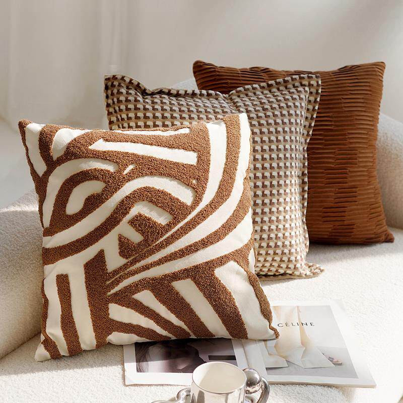 奶油色高级复古风打结抱枕套沙发床上棕色床上腰靠枕靠垫含芯飘窗