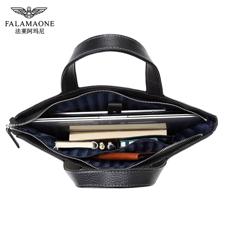 法莱阿玛尼牛皮商务手提包轻奢