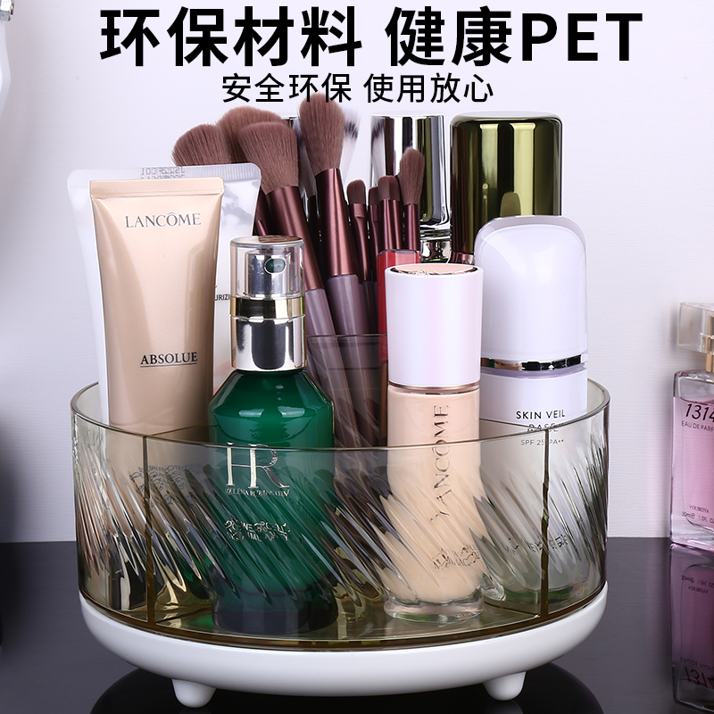 桌面旋转化妆刷收纳筒桌面大容量口红化妆品收纳盒透明旋转眉笔筒