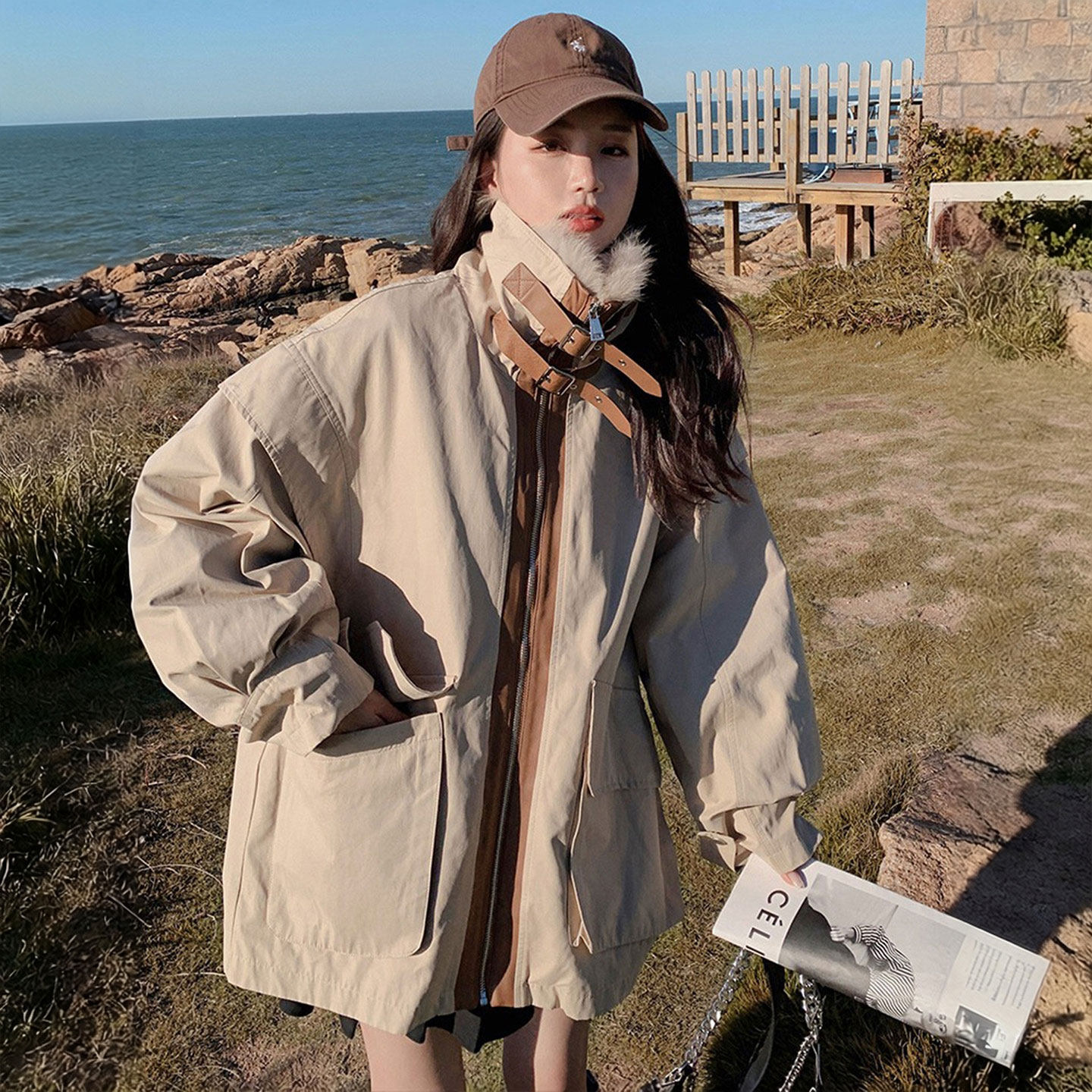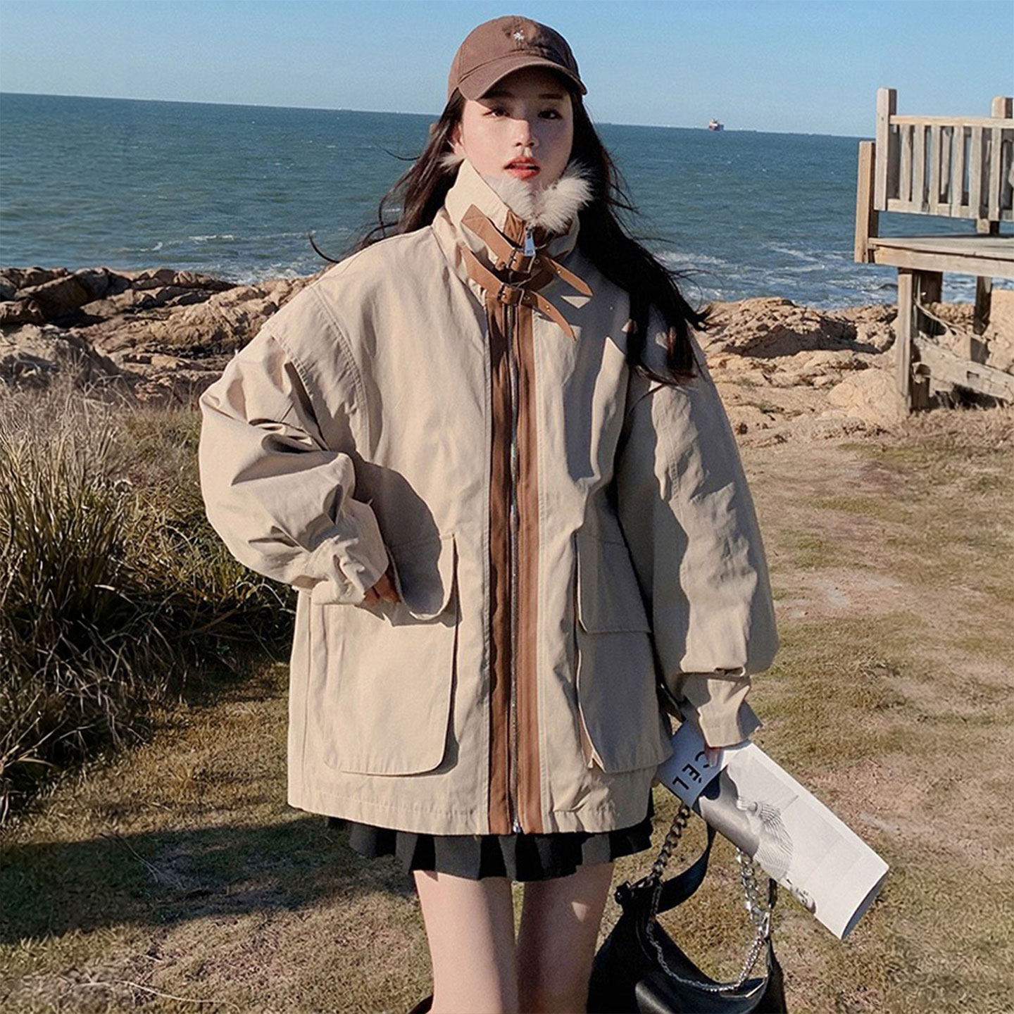 特大码女装慵懒风美式复古棉衣女