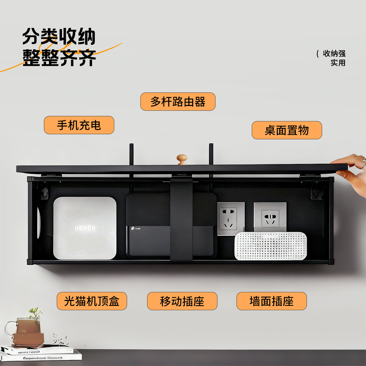 黑胶唱片客厅路由器放置架上墙电视柜机顶盒置物架复古wifi收纳盒