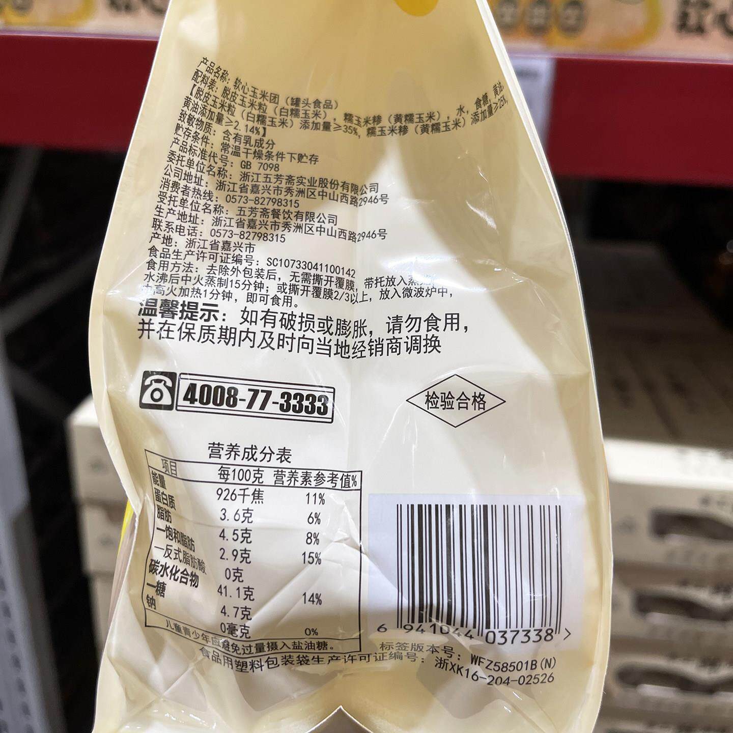 山姆会员店代购 配料表只有五种 黄糯玉米 芳斋 软心玉米团
