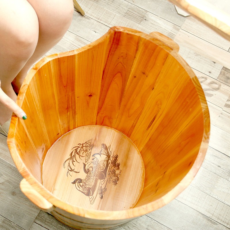 泡脚木桶足浴桶加高深过膝木制带盖子家用实木洗脚盆熏蒸蒸汽大桶