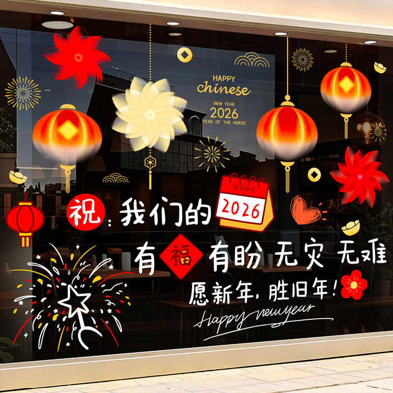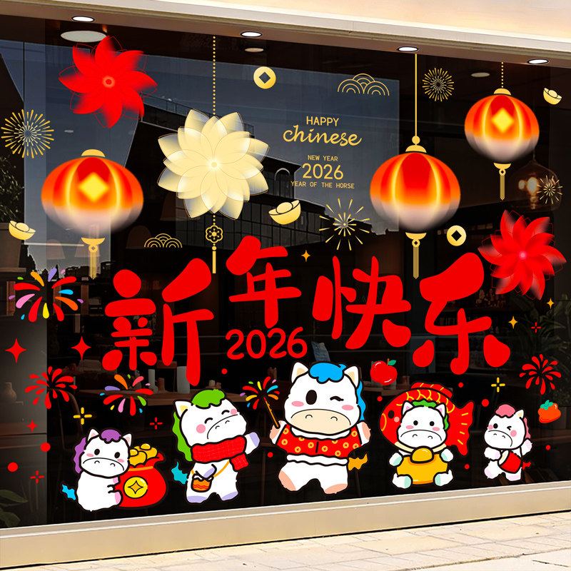 2026年新年马年装饰品窗花贴静电贴玻璃门贴纸春节过年布置窗贴