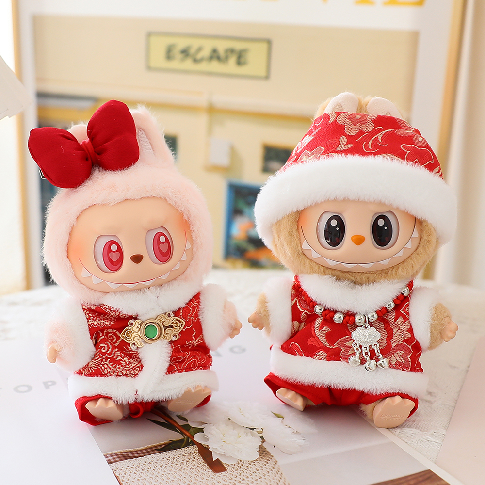 17cm拉布布新年衣服盲盒LABUBU一二三代娃衣坐坐派对着替唐装套装