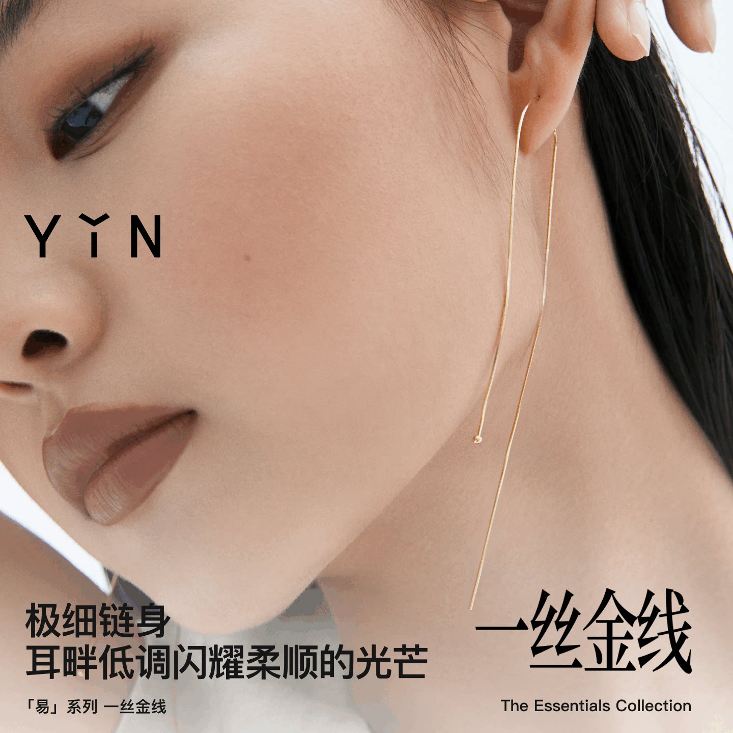 YIN隐「易」系列一丝金线耳线18K金Au750流苏女耳饰