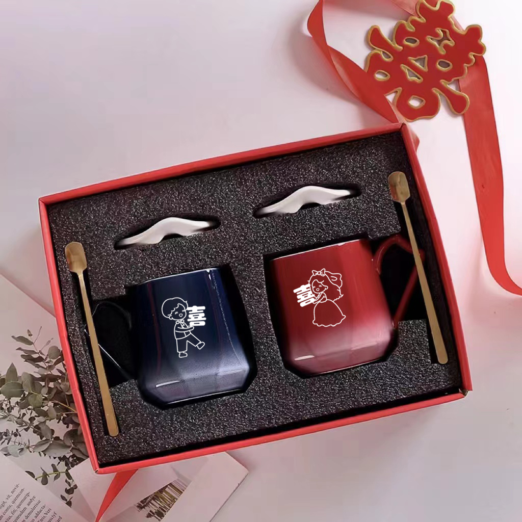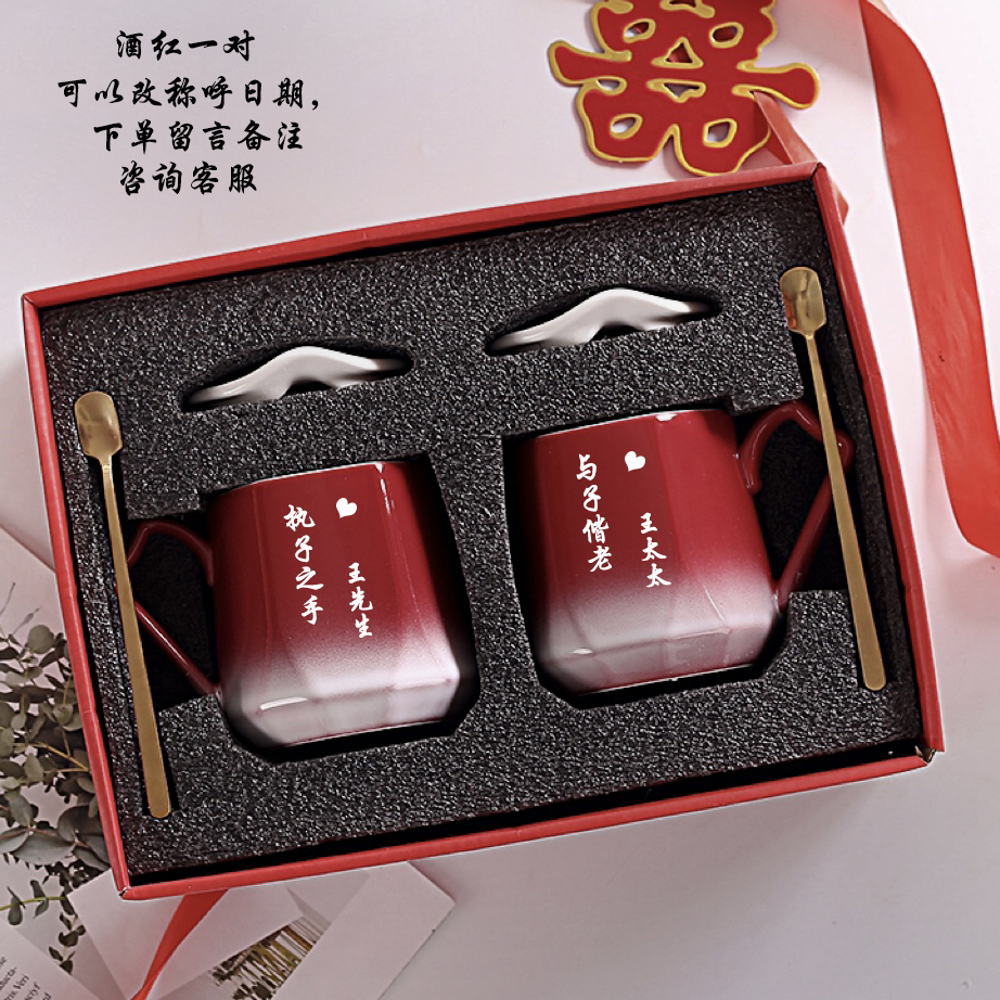 喜庆结婚喝水杯马克杯创意激光刻字陶瓷杯情侣杯对杯礼品杯喜字