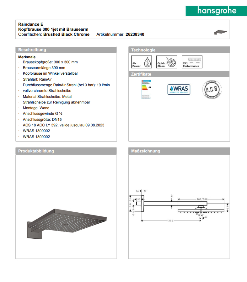 睿智灰26238340 顶喷 汉斯格雅飞雨300*300