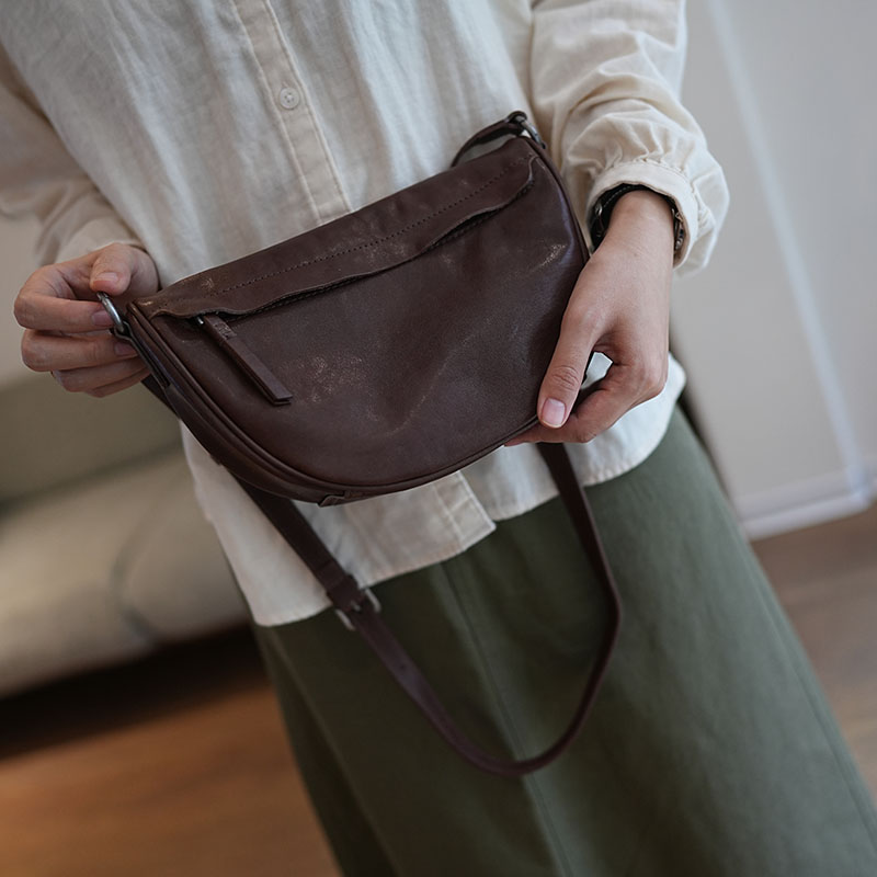 鹿小姐植鞣牛皮复古高级感半月马鞍包真皮百搭时尚单肩斜挎女包