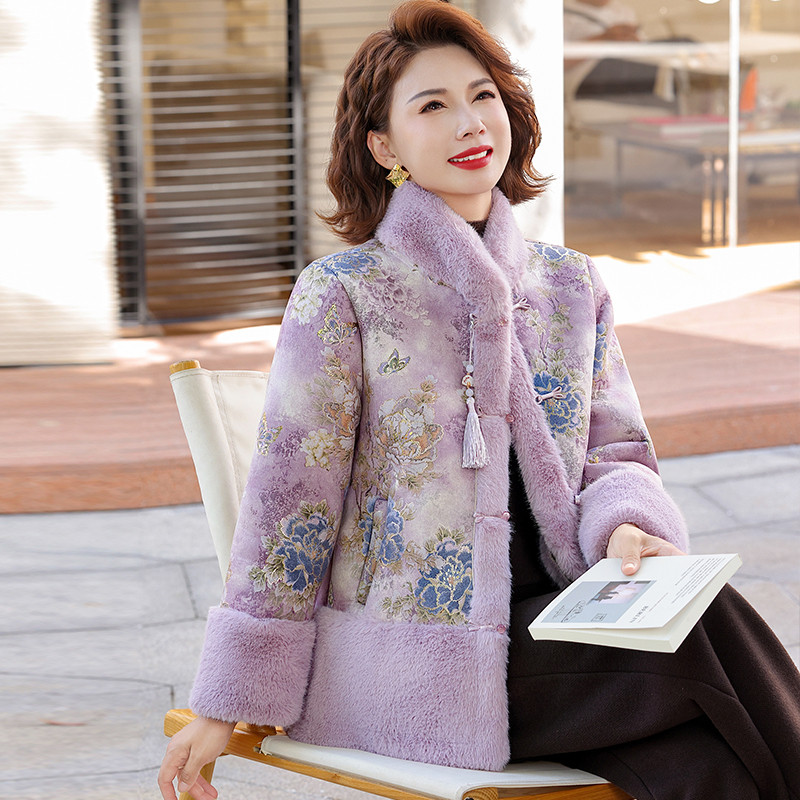 中老年女装冬装中长款外套洋气妈妈新中式仿水貂绒大衣加厚毛呢子