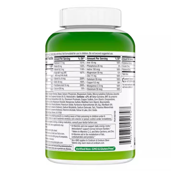 美国Centrum 成人复合维生素多元矿物质补充AdultS锌D3+B族200粒