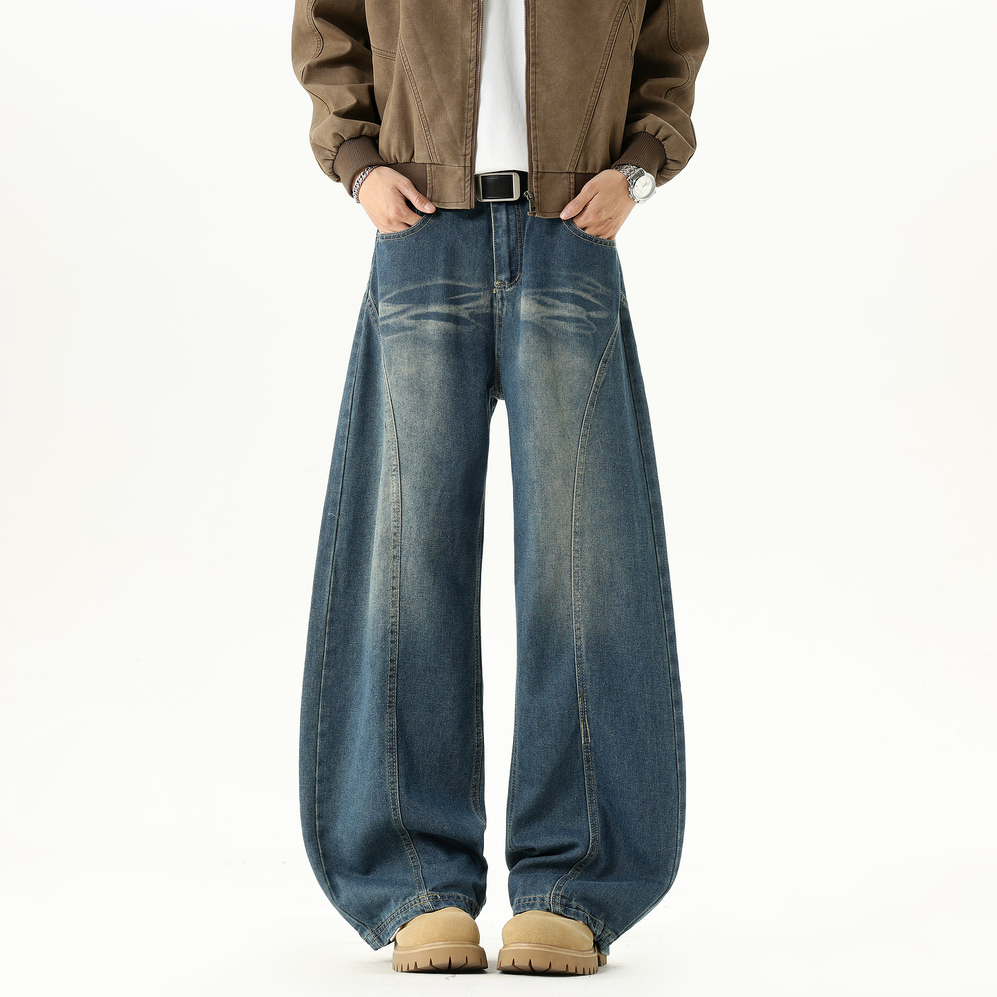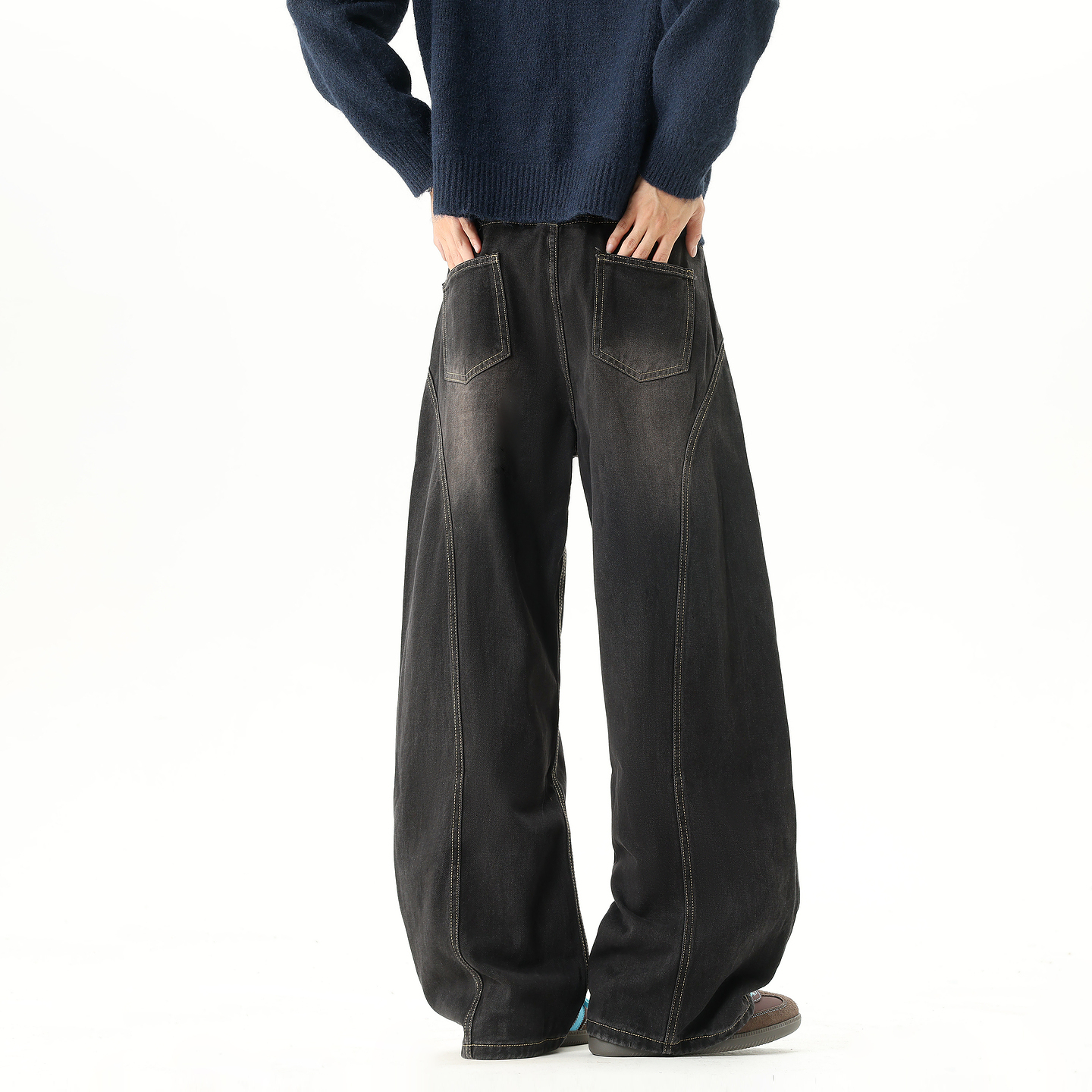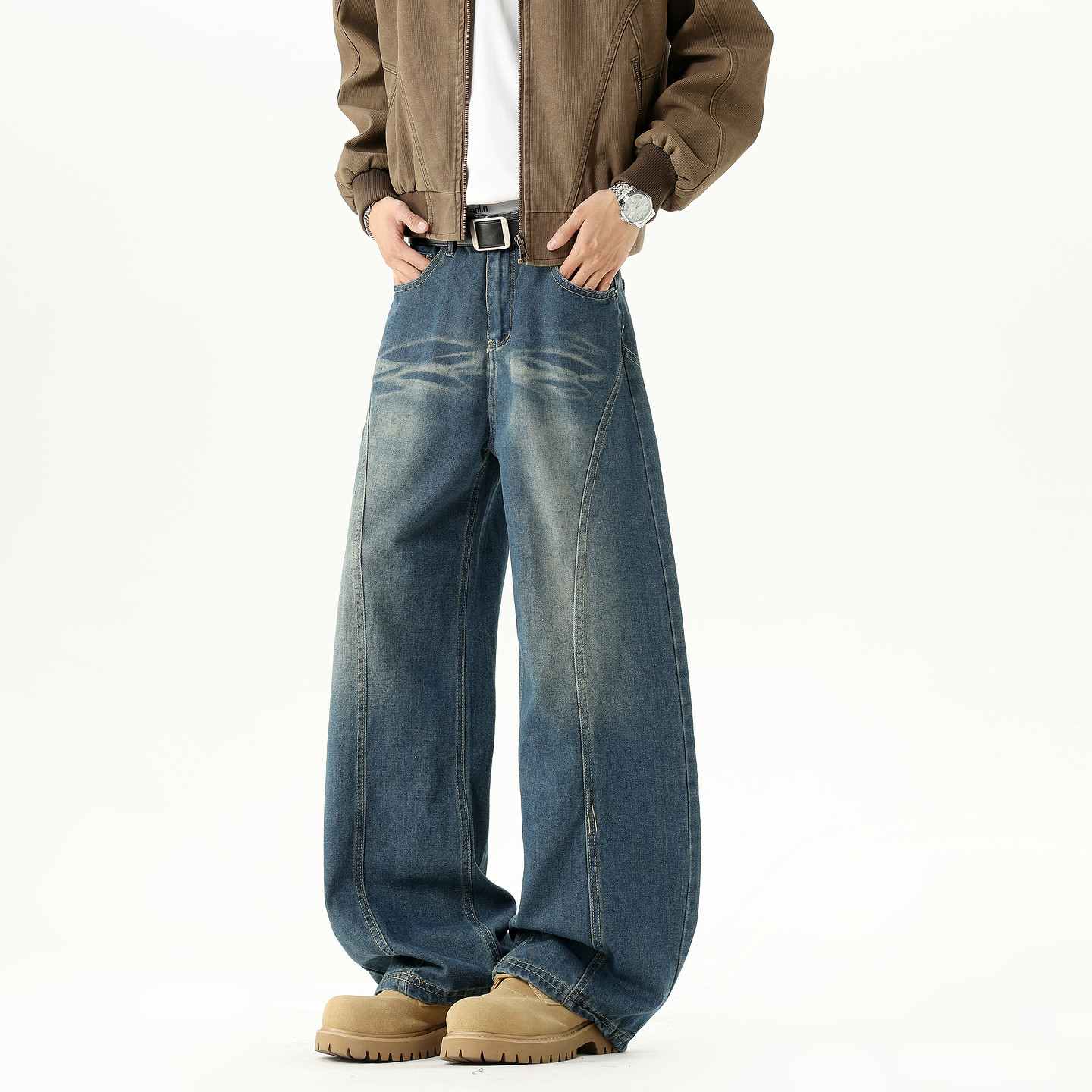 悟空有货潮牌美式解构水洗弯刀牛仔裤男宽松cleanfit阔腿百搭长裤