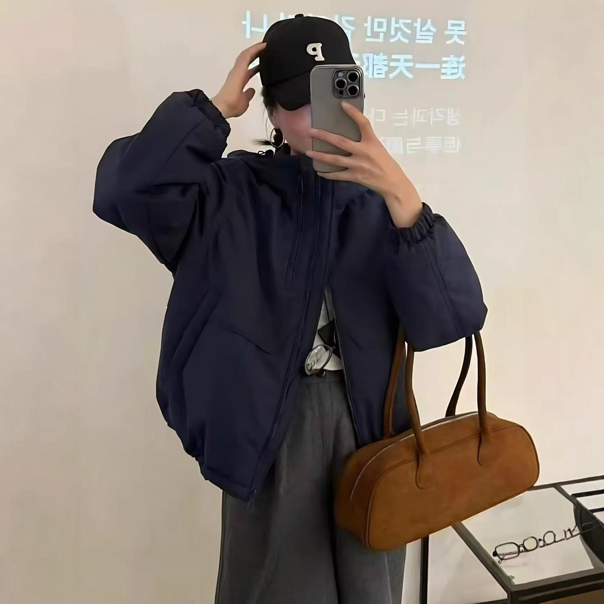 韩版连帽双拉链棉衣外套女2025年秋冬新款时尚百搭显瘦棉服上衣