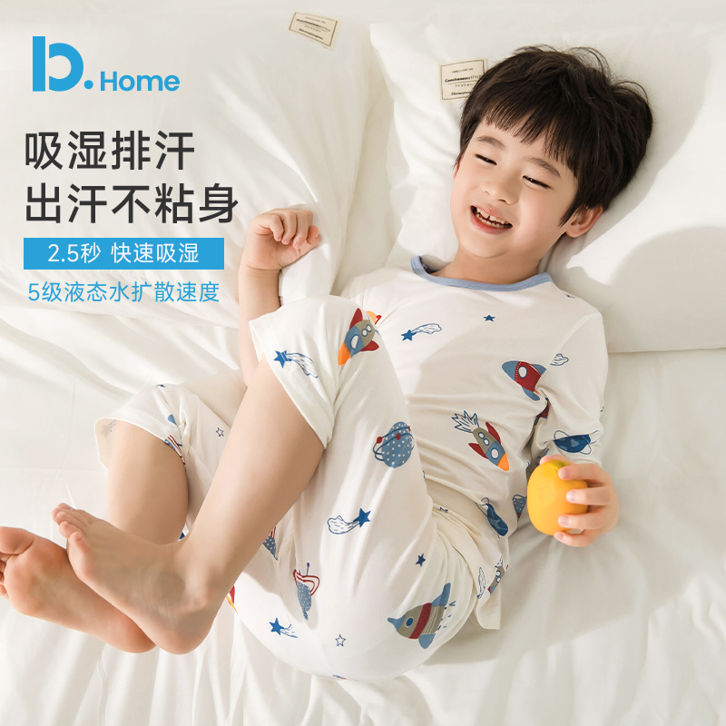 莫代尔儿童夏季睡衣薄款冰丝套装