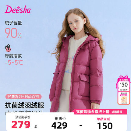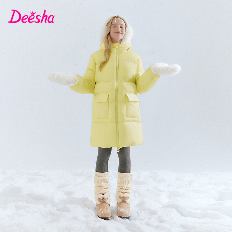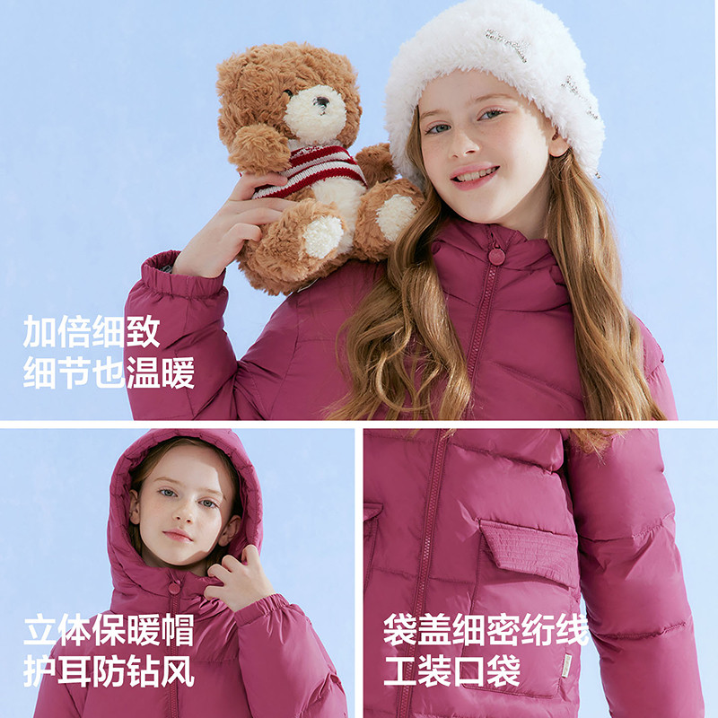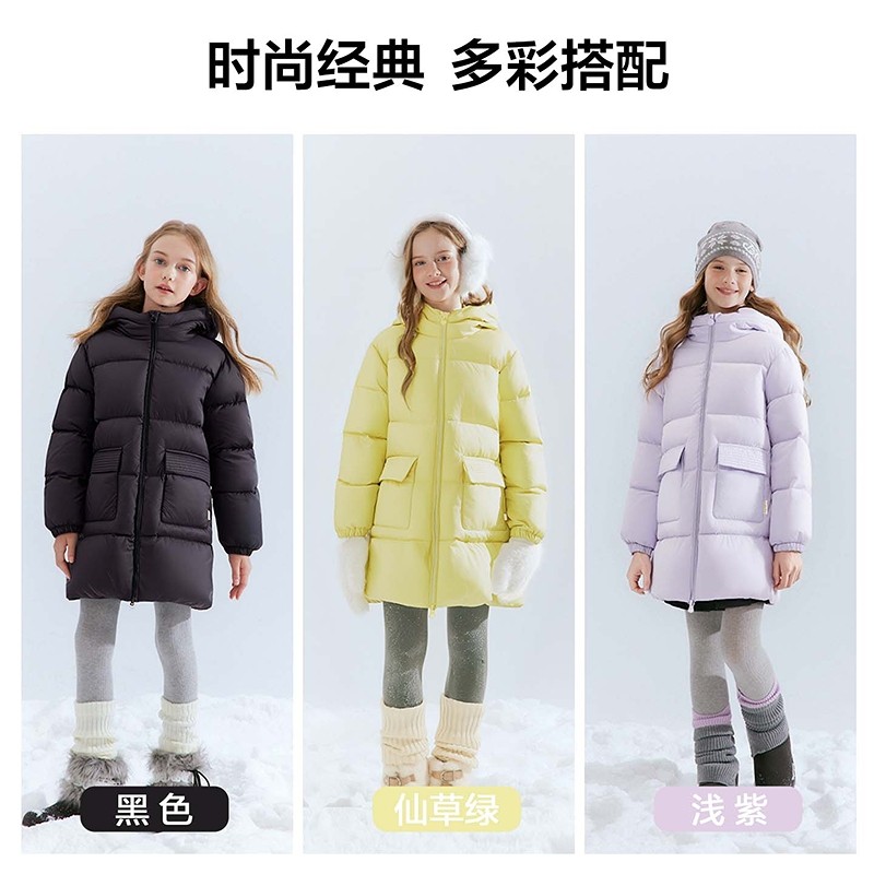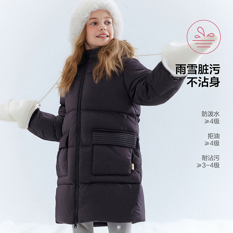 笛莎童装女童羽绒服冬季新款儿童宝宝中大童时尚中长款外套三防