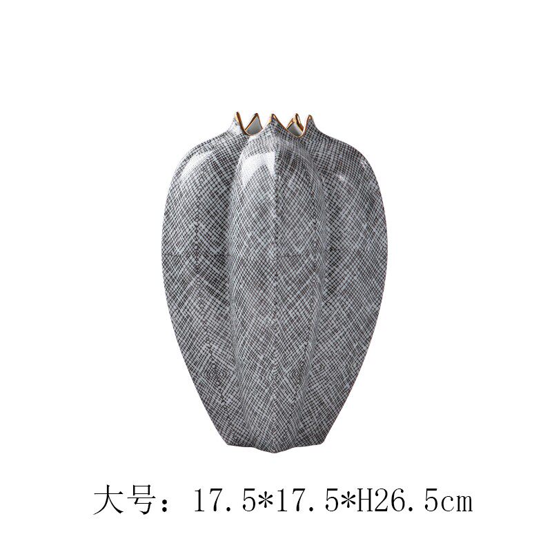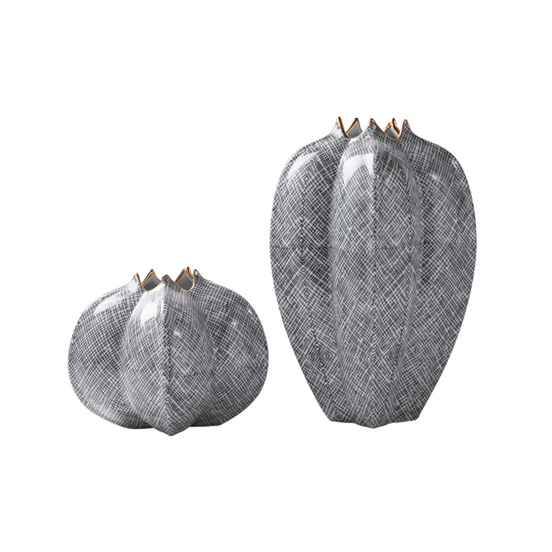 灰色网格杨桃陶瓷花瓶摆件创意插花艺客厅酒店样板间摆Z设软装饰