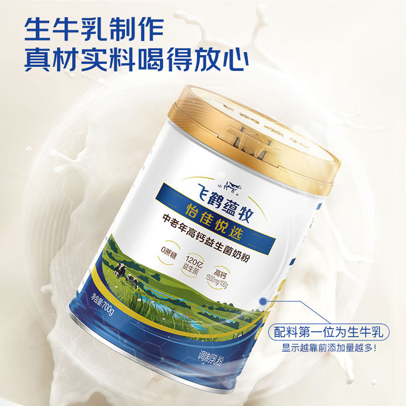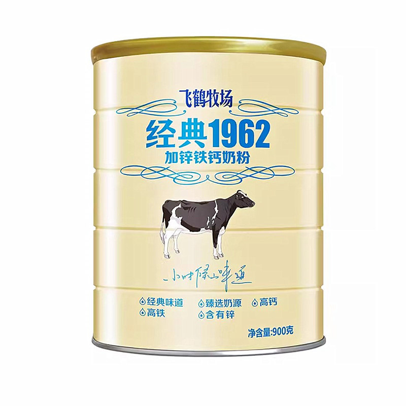 飞鹤奶粉高钙加锌铁大学生男 女牧场经典1962中老年牛奶粉900g罐
