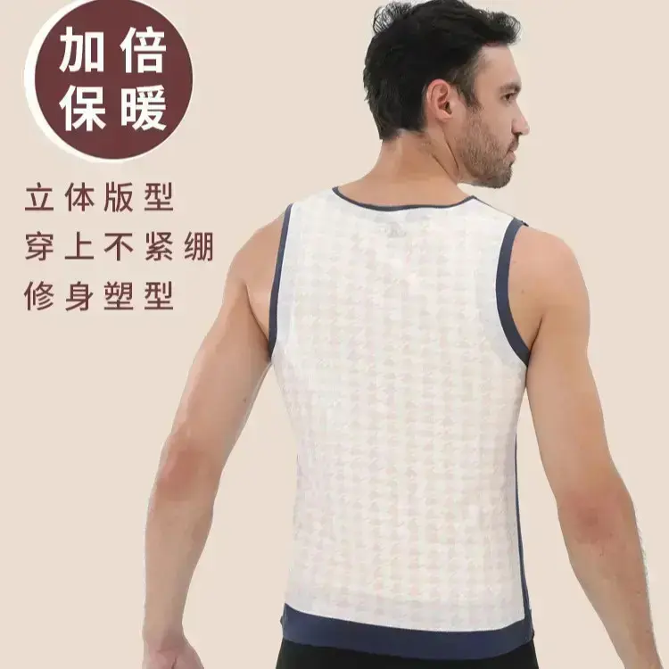 肆世名品三层保暖背心男贴片领贴身加厚加绒秋冬打底保暖上衣马甲