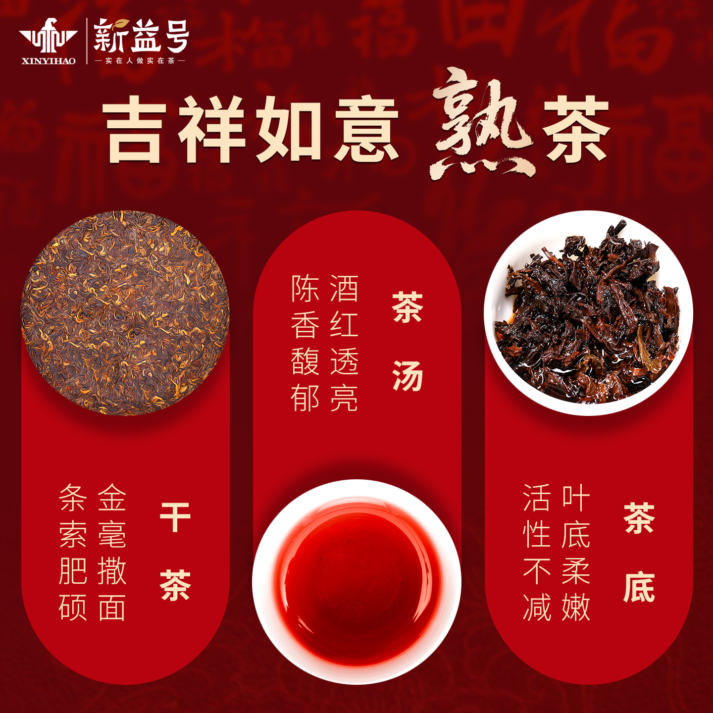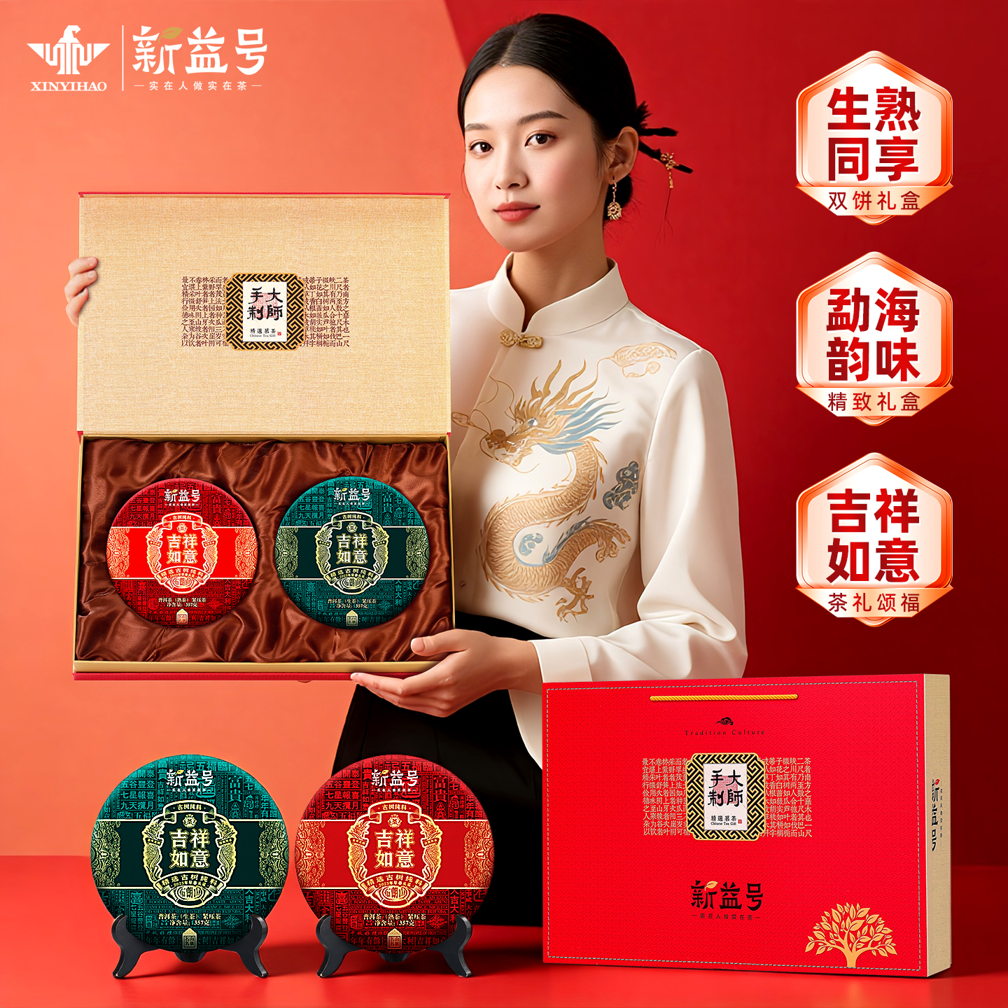 新益号茶叶吉祥如意普洱茶生茶熟茶组合礼盒装茶饼中秋送礼送长辈