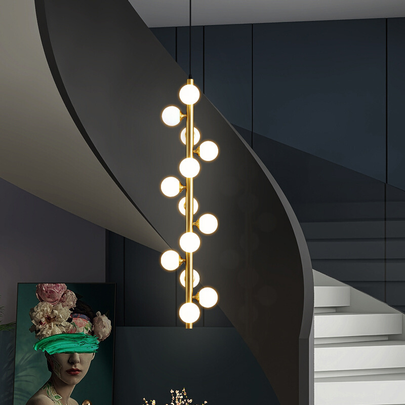 全铜魔豆吊灯吧台灯具现代创意餐厅个性卧室床头长条玻璃楼梯灯具