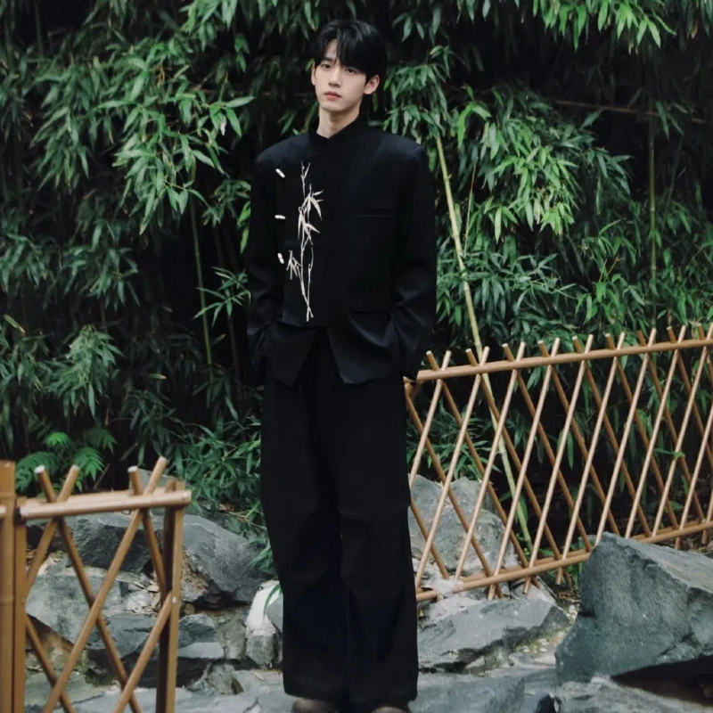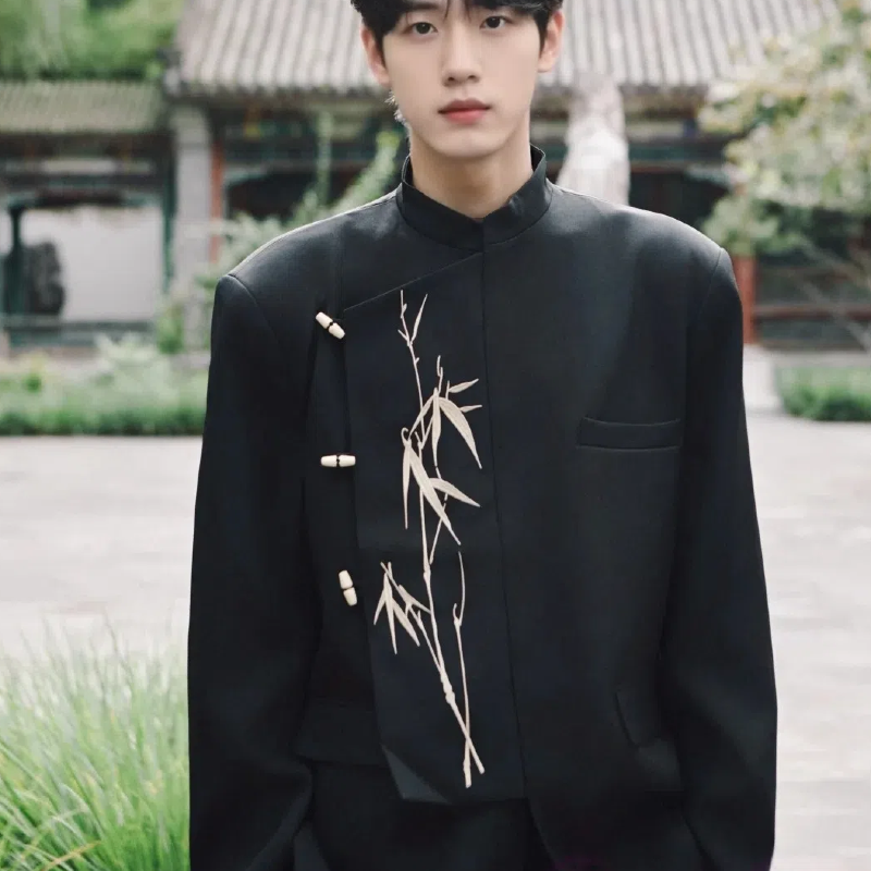 欢喜橙【蛮瑛】新中式立领男士成人礼服订婚结婚西装套装