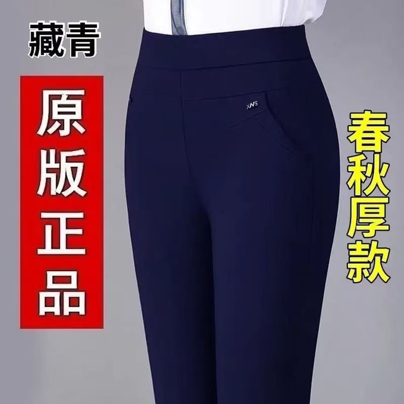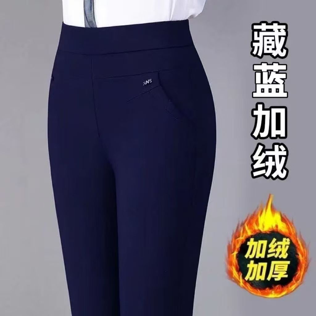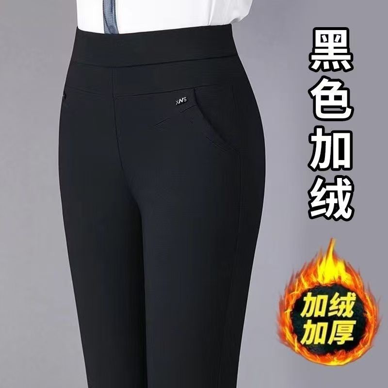 加肥春秋加厚女士裤子高腰弹力休闲裤女中老年女裤直筒大码长裤女