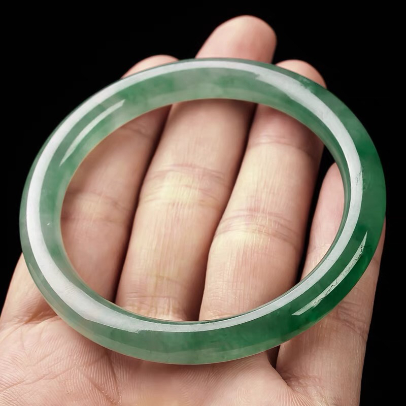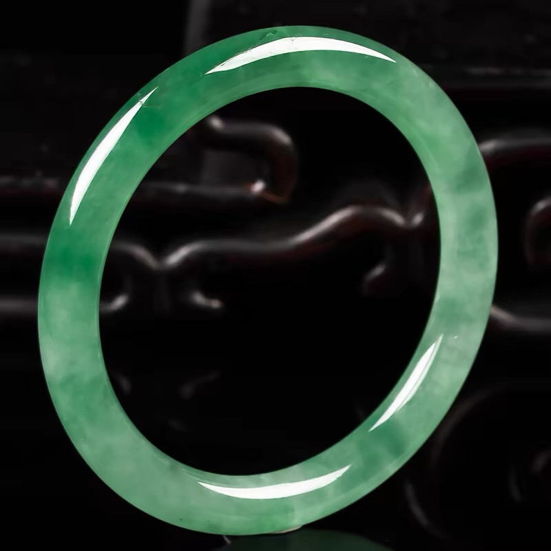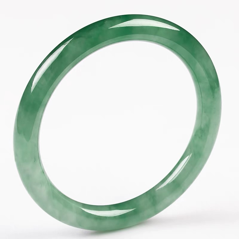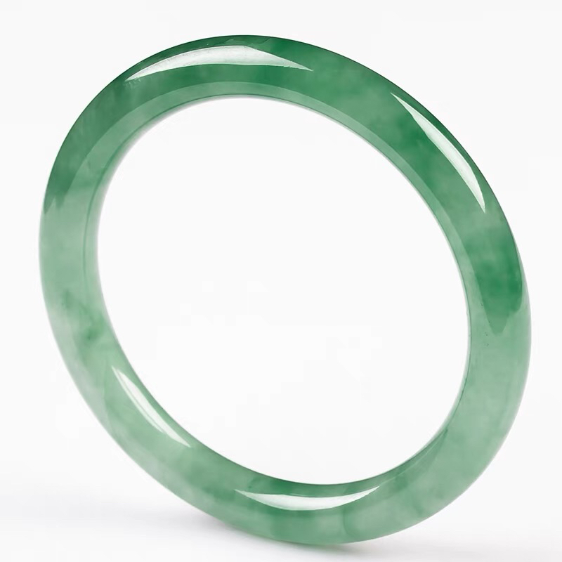 缅甸翡翠玉石细圆条贵妃手镯飘花浅绿阳绿冰种女款玉手镯子送人礼