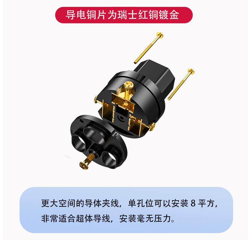 3200纯铜紫铜镀金镀铑220V发烧级音响功放美标国标电源线插头插尾