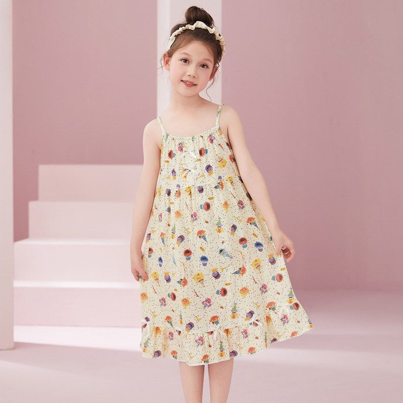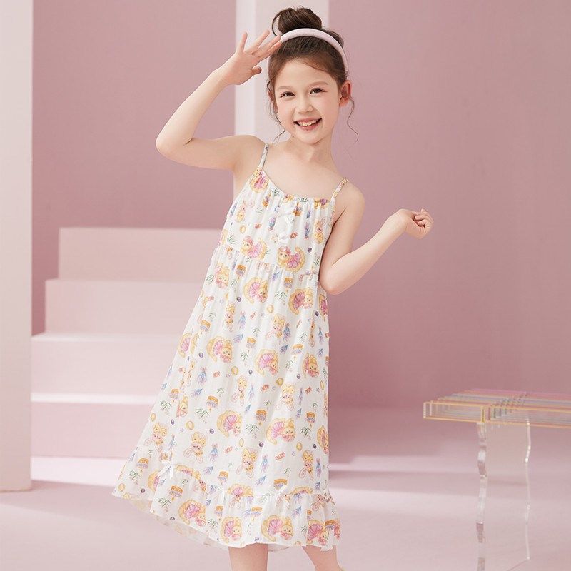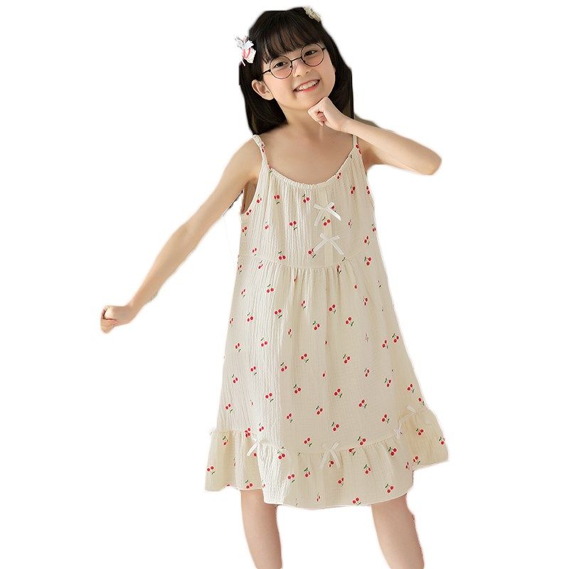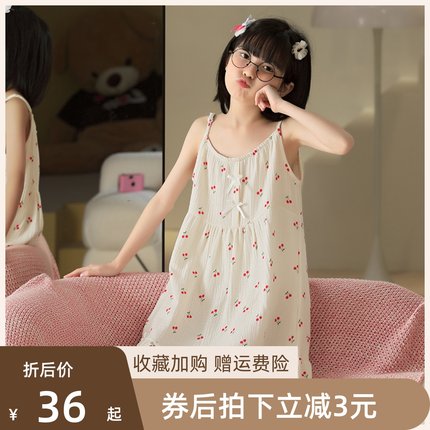 儿童睡衣女童睡裙夏季薄款纯棉纱布女孩吊带背心连衣裙家居服夏天