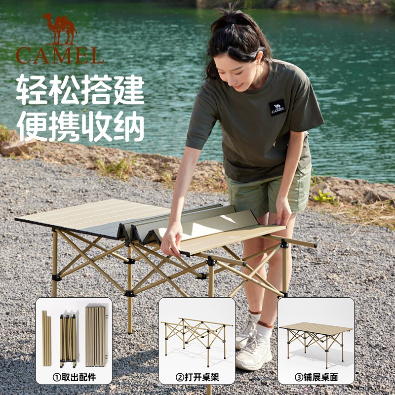 骆驼露营桌椅野餐桌便携式桌子椅子一体全套装备户外折叠蛋卷桌