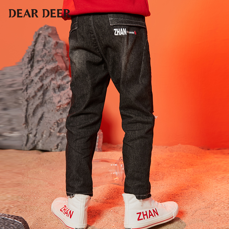 迪迪鹿男童秋冬牛仔裤冬装新款男中大童休闲长裤儿童裤子加厚