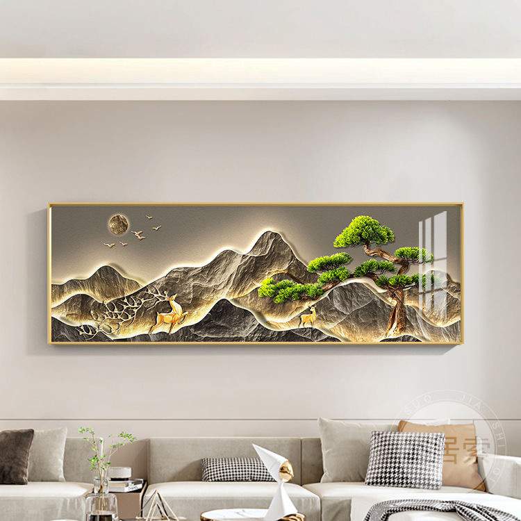 背有靠山茶室客厅led灯挂画横幅迎客松大厅墙壁画沙发背景装饰画