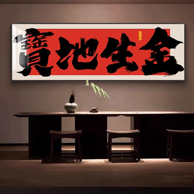 字画国潮风横幅书法挂画财源广进办公室公司墙开业送礼牌匾画定制