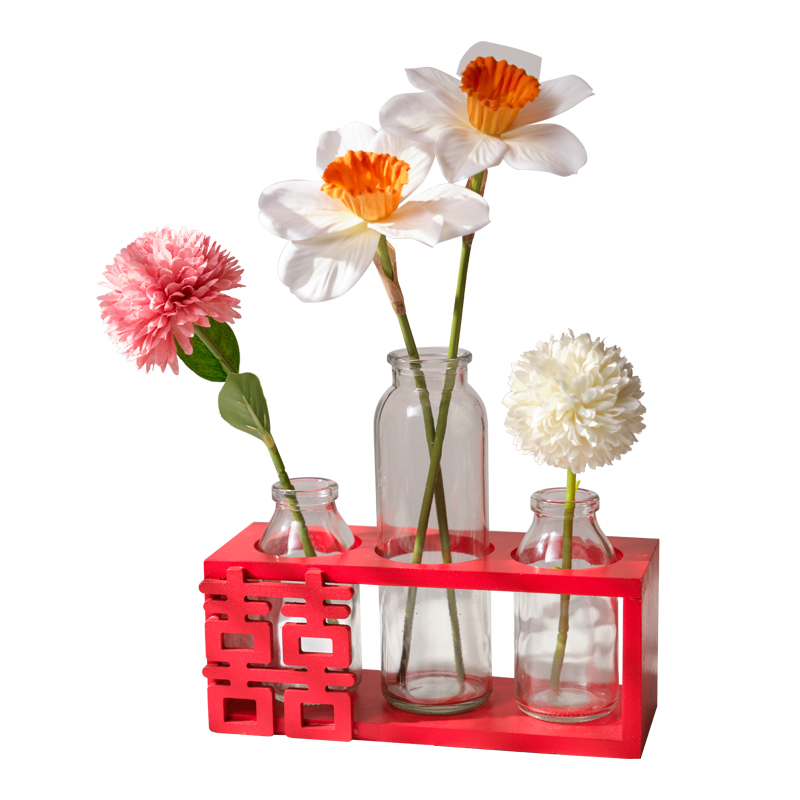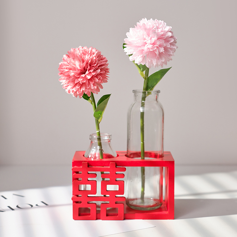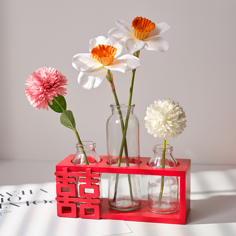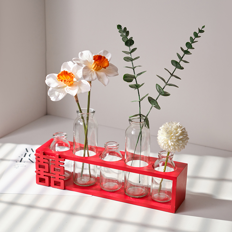 网红玻璃小花瓶创意客厅桌面插花摆件办公室木质透明简约水培装饰