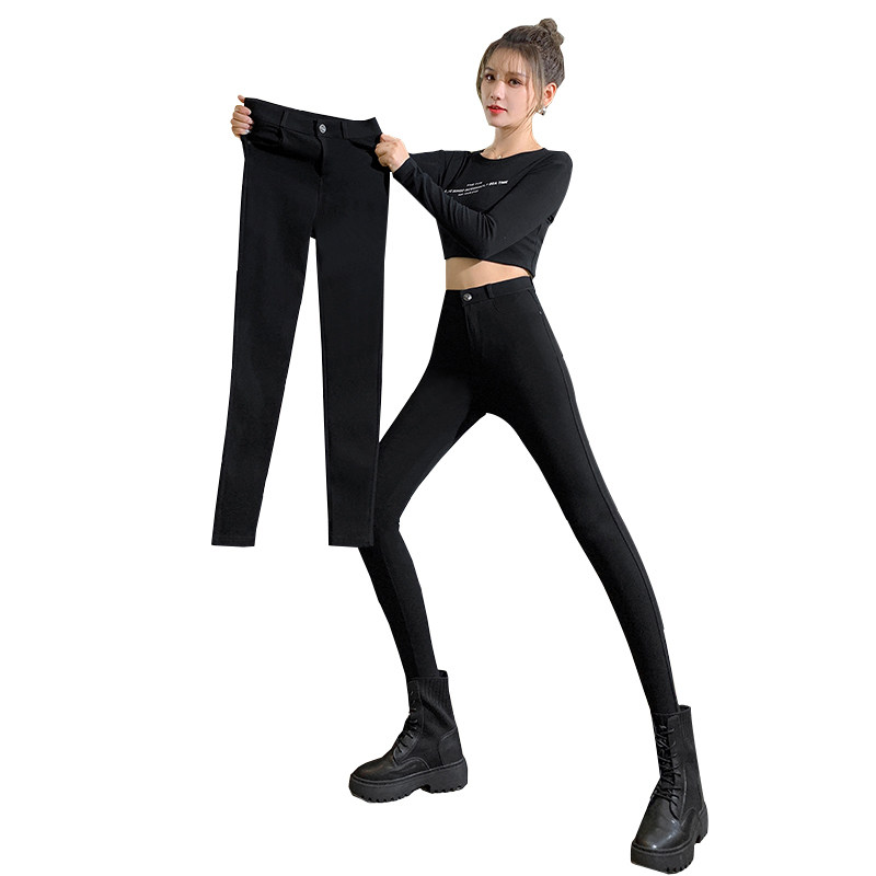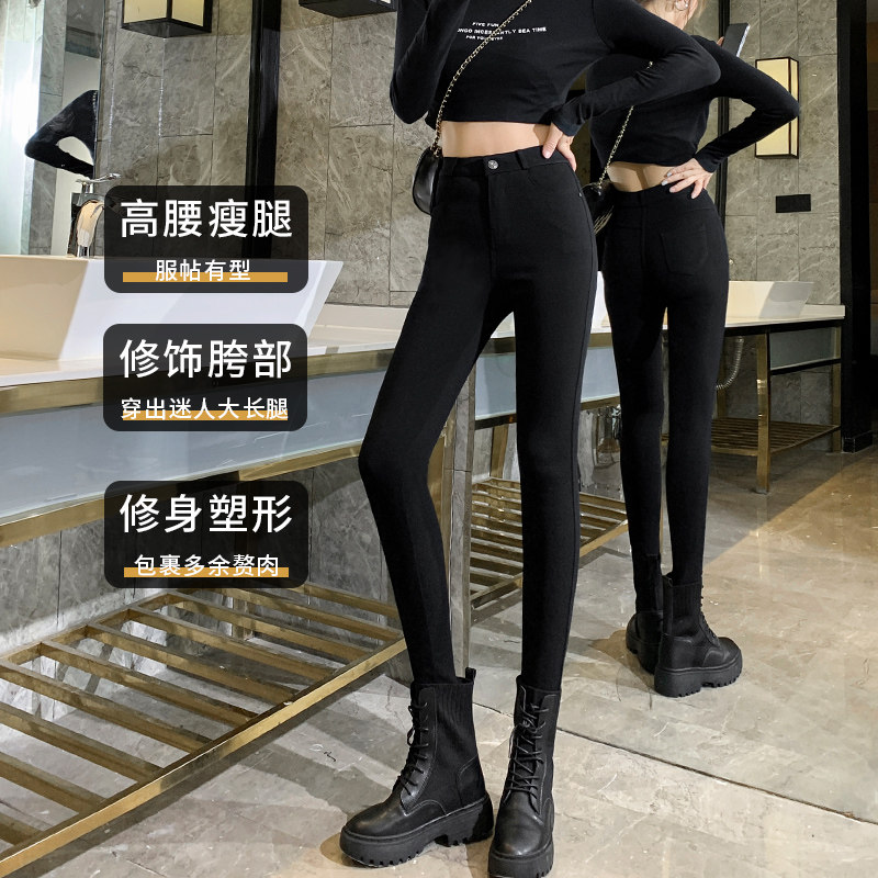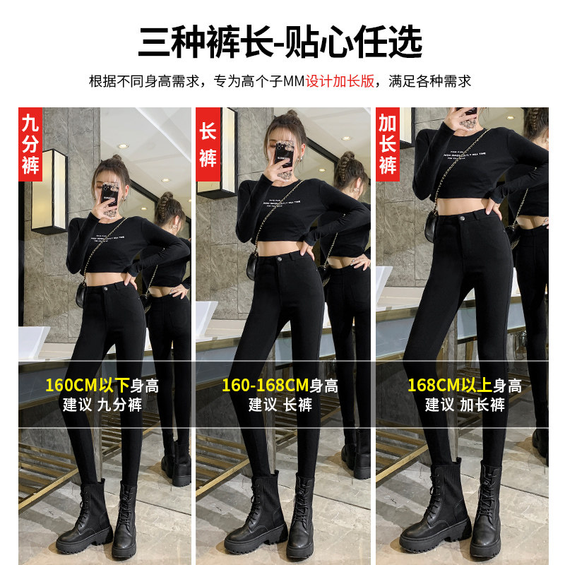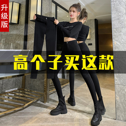 加长裤子女高个子黑色打底裤女外穿秋冬加绒高腰紧身小黑裤小脚裤